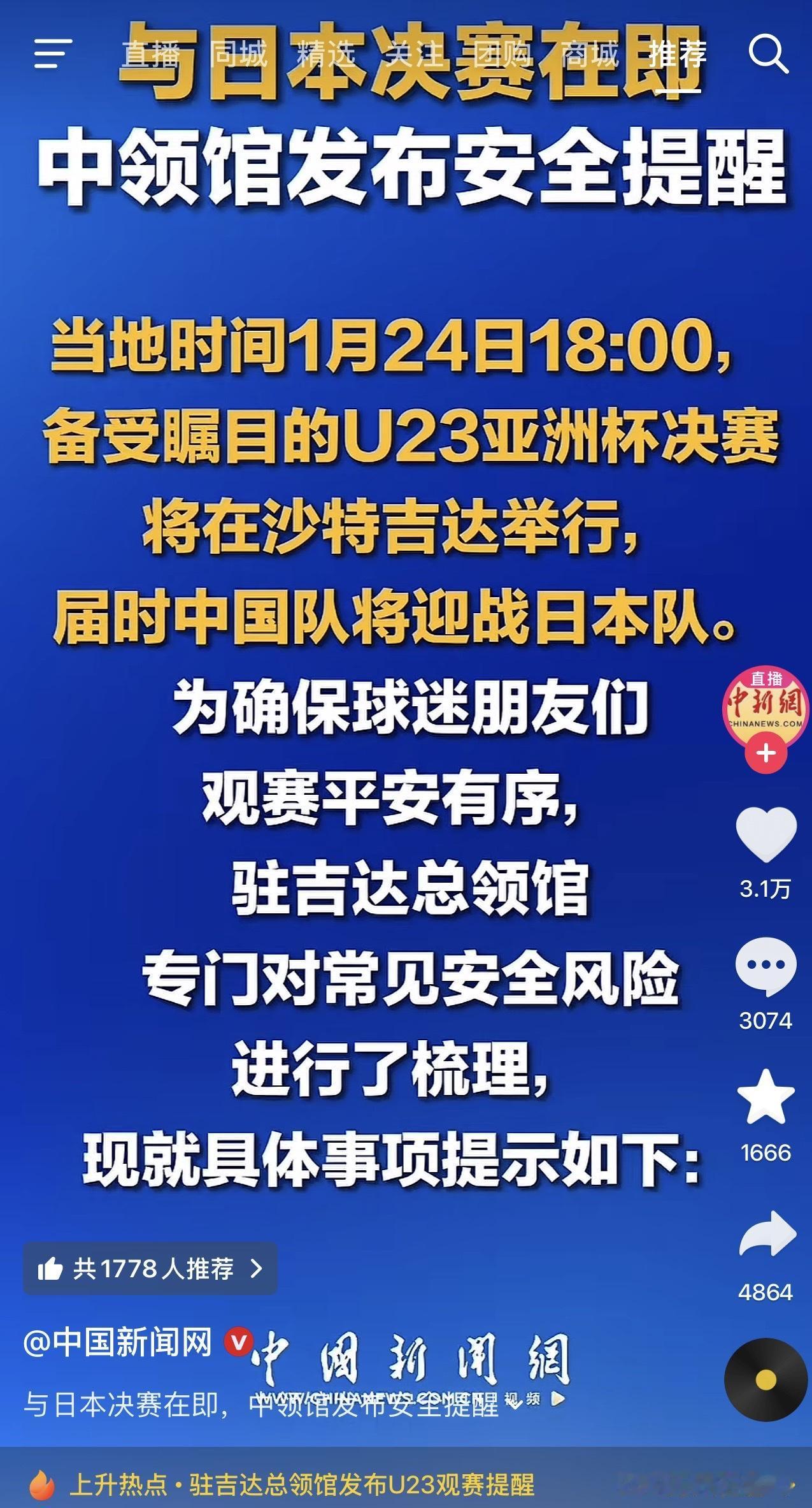 还有个把小时,中国队对战日本队,决赛又是世仇!把主办方都整紧张了,大使馆都发通报了! 提醒大家注意安全!球迷们一定注意安全,一定不能落单!有事立刻联系大使馆! 这场比赛就是一个字干!输赢不重要,就是干! 加油!加油!我都有点坐立不安了!咋办啊![捂脸][捂脸][捂脸][捂脸]