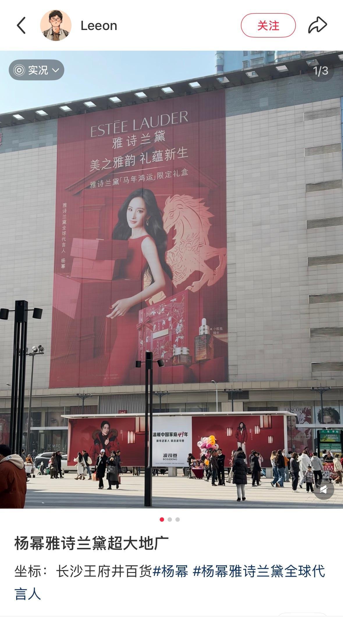 杨幂雅诗兰黛品牌全球代言人 长沙王府井百货出现杨幂雅诗兰黛超大地广小雅可以啊,2026新广好大有排面!!