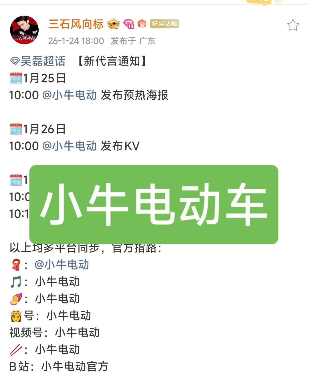 吴磊舰长往那一站就是权威卧槽,吴磊真的代言小牛电动车了……只能说欲戴皇冠必先承