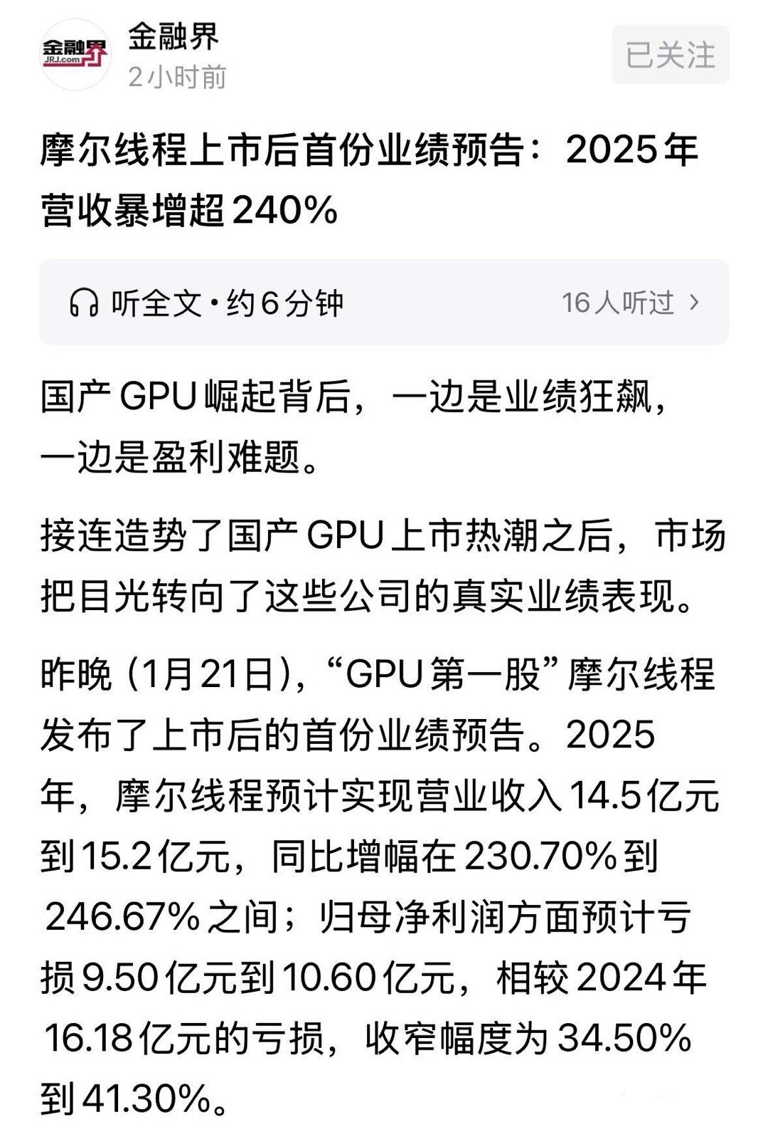 摩尔线程终于营收覆盖亏损金额,2025年营收14.85亿元(中位数)冋比增长240%,亏损10.5亿元(中位数),2024年亏损16.18亿元。对于摩尔线程这类GPU上市公司而言,现在的估值体系是比较难以准确把握的。或许只有等公司赢利的时候才能有较好的机会给出。目前近3000亿元的市值,应该是看到了数年之后,或者是提前给出了盈利模式。2026年营收增长幅度若达100%,或许就可以扭亏转盈。也就是说,2027年盈利至少要超过20亿元,才能匹配现有估值水平。参照物寒武纪,目前市值5600亿元,前三季度实现16.05亿元,全年约可达25-30亿元区间。