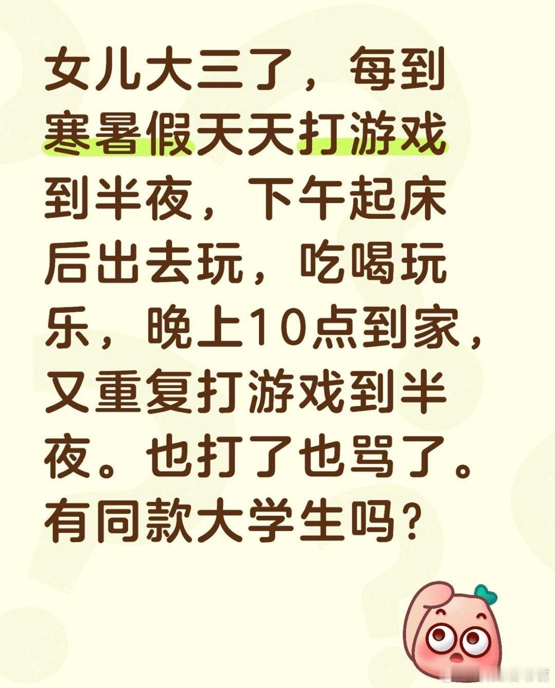 女儿大三了,每到寒暑假天天打游戏到半夜