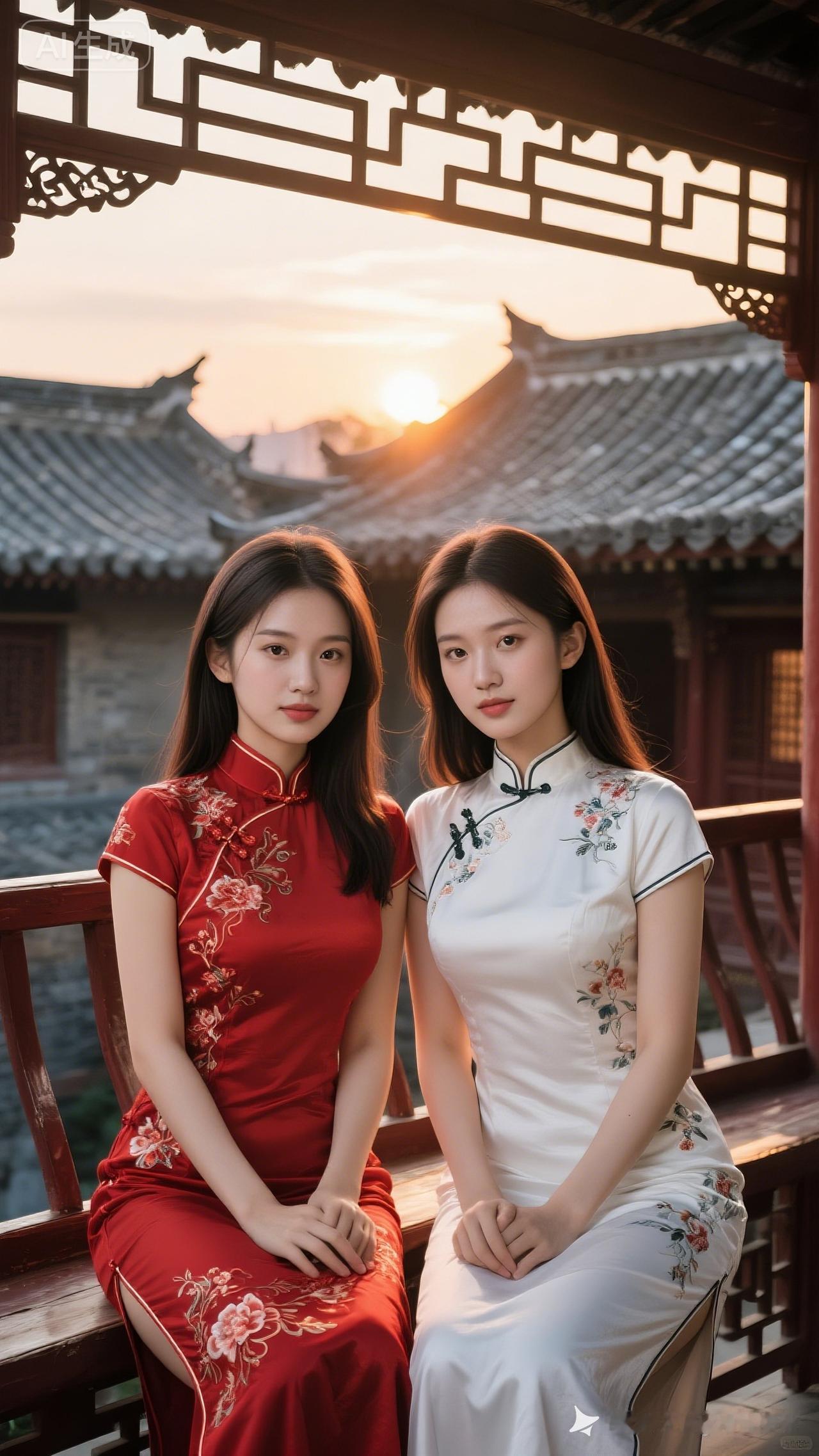 古风姐妹花,红白相映美如画🌸💃