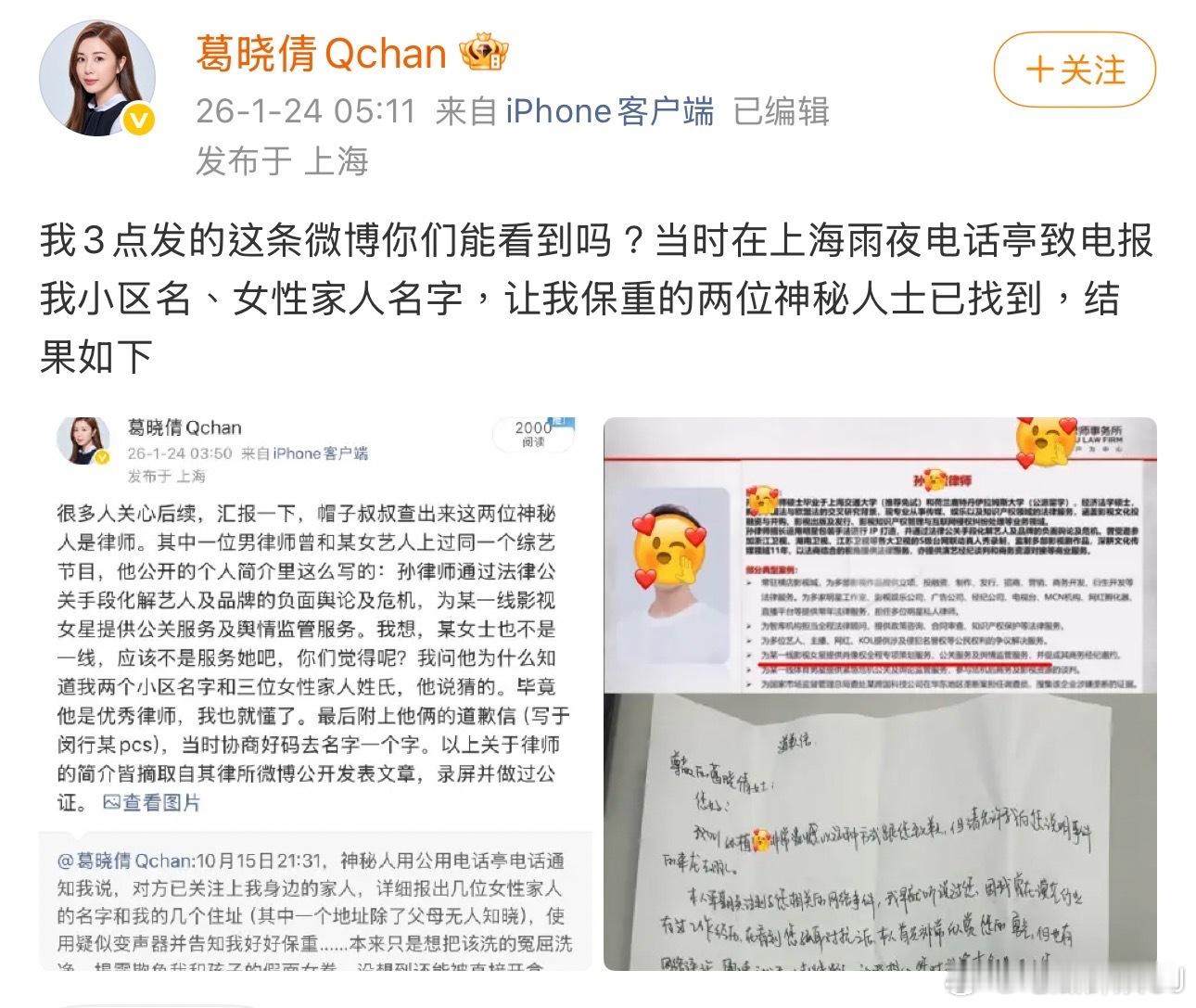 袁巴元前妻葛晓倩说2024年10月用公共电话威胁“你的家人和你几个住址都已经被掌握了”让她“好好保重”的两个神秘人士已经找到,居然是律师,而且其中一位和张雨绮上过同一个综艺节目。她打算年后去黄浦区司法局投诉,评论区一片艾特辽宁卫视和辽宁春晚的,觉得这事儿如果真跟张雨绮有关那么张雨绮就不该上辽宁春晚。
