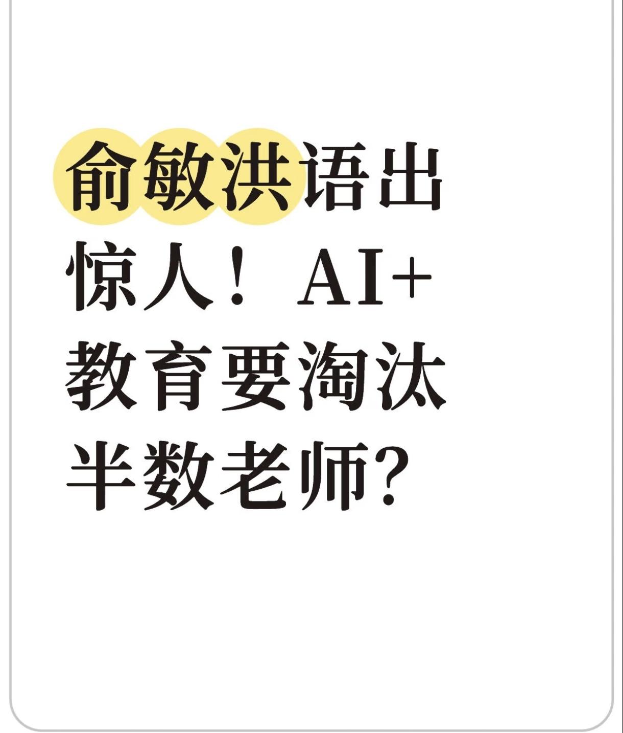 俞敏洪竟然说的这么直接? 中国一半的中小学老师都不合格, 会被AI代替? 他只是个商人, 我觉得他有点自以为是了, 否定全国大多数的老师, 那是不是所有老师都得去新东方学习? 大家快去新东方学习、补习吧! 俞敏洪 新东方