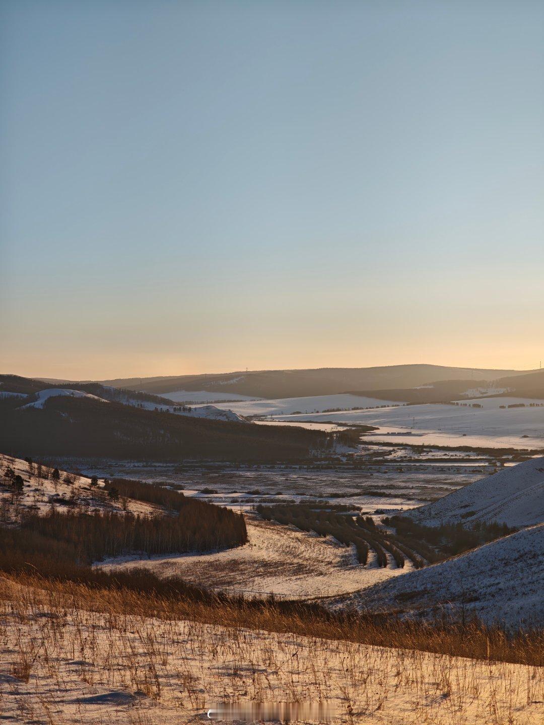 在-33°的林海雪原里,看5点的日落,真的好美啊冰雪春天牙克石