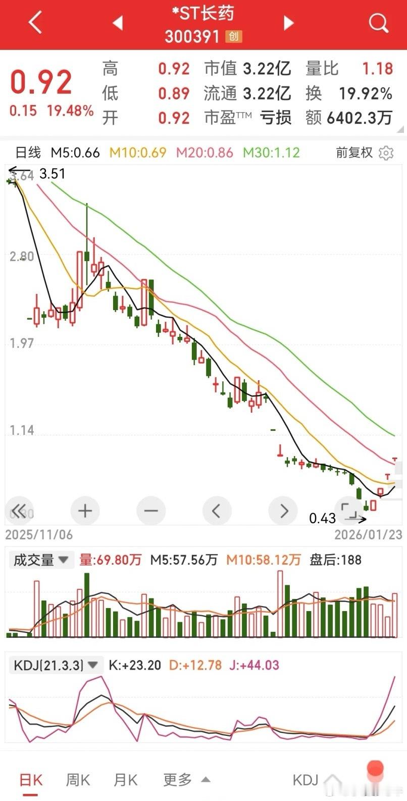 *ST长药四个20CM,下周一停牌,应该没有多少散户去打板吧。看分时图,只有第一个涨停板日的开盘十分钟有介入机会,后三个涨停板都是快速拉板或一字板。如果投机者在第一个涨停板日追入,只要后面不贪能及时撤离,那么还咬了一大口肉。可如果还在贪恋都吃两口的,那就要遭了。其实,很多类似退市股在退市前都有连续拉升动作,有的是主力出不来对倒自拉自唱,有的则是投机搏一把。但不管哪种,对于散户都是风险极高的,一不注意就被闷煮。