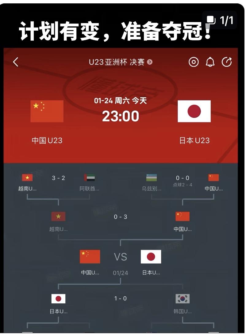 就在今晚了:U23亚洲杯!对战日本!听说对面是精锐部队!莫慌!打的就是精锐! 啥也别说了,就是踢,就是干,别管是球,还是人,别怕犯规!别管比分,就是不要停!不要怂! 哨响之前,信念绝不动摇。终场落幕前,唯有奋勇向前。 要记住,我们为谁而战?我们为身后亿万永不独行的中国人而战。 “计划有变,准备争冠!”