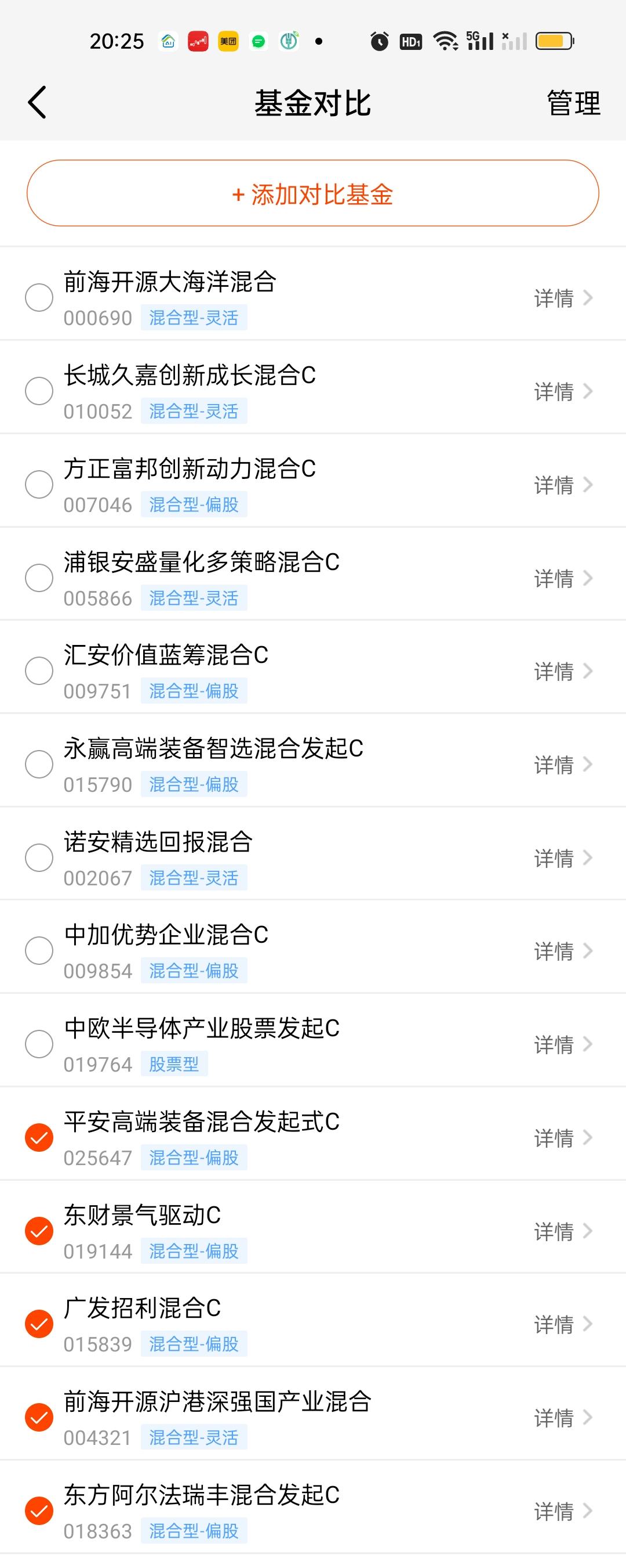 商航目前显示的共有23只基金,其中14只股票型基金,9只指数型基金。从收益对比来看,高端装备还是可以的,但短期内的收益率有几只是可以的,其中前海开源沪港深强国产业,西藏东财景气驱动,在近一个月的表现都要强于高端装备。