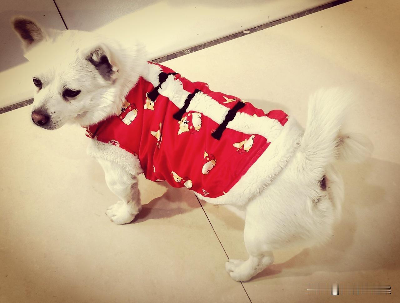 今日随手拍超市里偶遇到的,一身白色上被红色的小棉夹裹着,静静的站在那儿,是在等它的主人吧!我按下了手机快门,留下了它的身影。好奇它的主人是不是一个小女孩,正想呢,过来一个长头发穿红黑相间的棉衣的“女孩”过来了,到它面前喊了一声,我听声音心一振,再仔细一看,这哪是女孩,原来是一个小伙子。