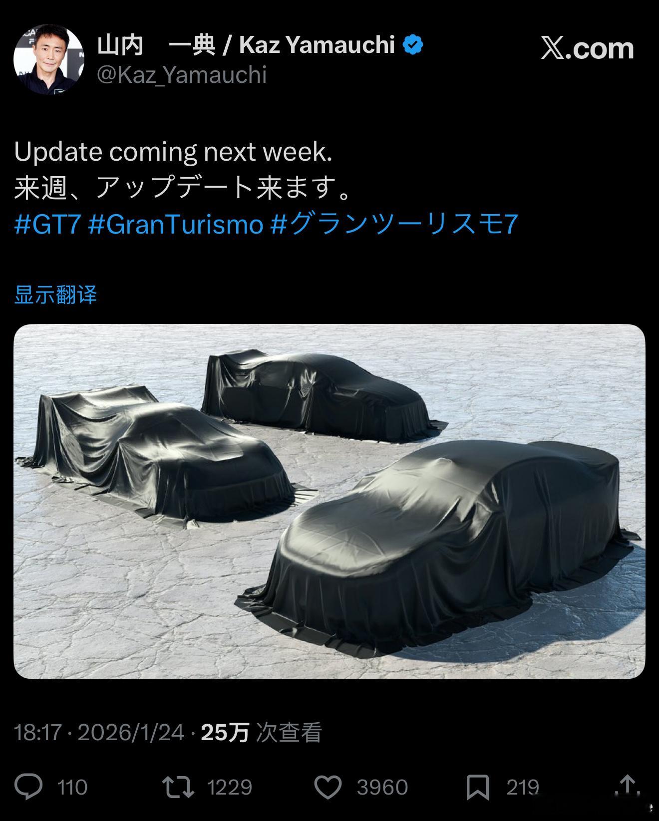 终于来了,山内一典发布GT赛车7新预告,下周将更新3款新车,据网友猜测这三款车分别是小米SU7 Ultra、保时捷911 GT3 R、现代ELANTRA TCR,我找了这三款车的图,对应图2、图3、图4。其实一眼就能看出来哪台是SU7 Ultra,右下角的C位就是,激光雷达哈哈。去年6月SU7 Ultra官宣成为28年来GT赛车首款中国车,现在终于要上线了。这个游戏玩过的都知道里面的车都什么样的影响力,SU7 Ultra听说还是山内一典主动找小米合作的,他当时被SU7 Ultra原型车在纽北的成绩所吸引,之后试驾后,又被这款车的实力所打动,才有了这次合作。