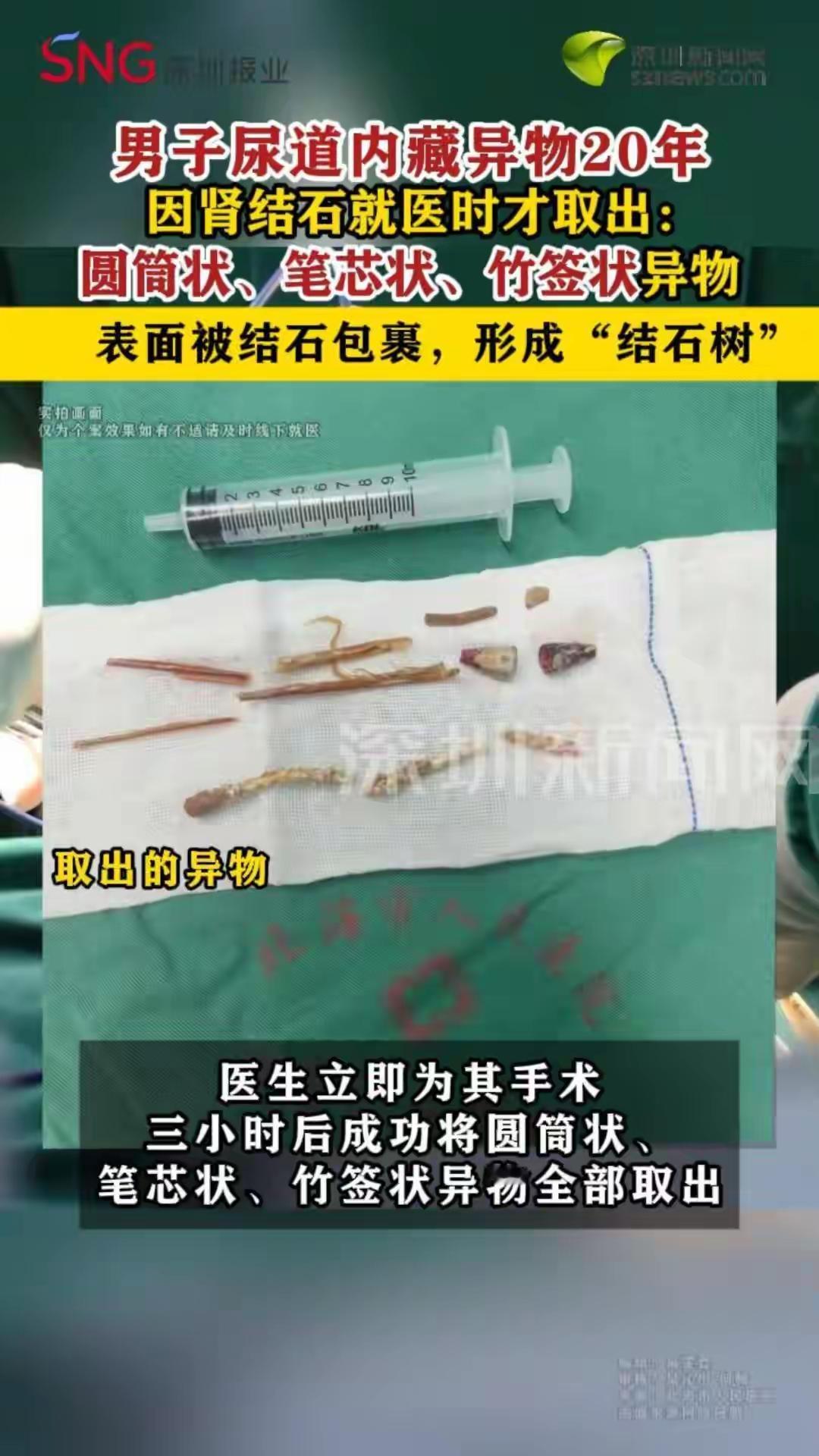 北海一男子尿道内藏匿笔芯、竹签等异物长达二十年,最终形成罕见“结石树”并引发肾脓肿。手术成功取出,该病例引发对就医心理与健康管理的深层思考。 深度看点: 1. 病理奇观:异物作为核心,经二十年矿物沉积形成“结石树”,导致尿路梗阻与肾脏严重感染。 2. 心理高墙:极致的“病耻感”与“讳疾忌医”心理,是导致其忍受二十年痛苦、延误治疗的核心原因。 3. 基层短板:凸显基层医疗在主动健康管理、建立信任医患关系以早期发现隐私问题方面的不足。 4. 教育缺失:反映公众健康素养中,对自身身体的科学认知、自我觉察与及时干预能力存在缺位。 5. 医学曙光:现代泌尿微创技术为隐秘疾病提供了创伤小、恢复快的解决方案,降低了治疗的身心门槛。 总结:此病例是极端警示,呼吁社会共同构建消除病耻、强化预防、便捷可及的健康支持系统,让所有疾病都能被阳光照见,得到及时救治。男性输尿管结石 结石结石排出 手术取结石 老年结石 喝茶结石 结石梗阻尿路 老人膀胱结石 尿道肿瘤 膀胱取出异物 尿管结石 输精管结石 膀胱造瘘结石 结石夹出 盐城结石