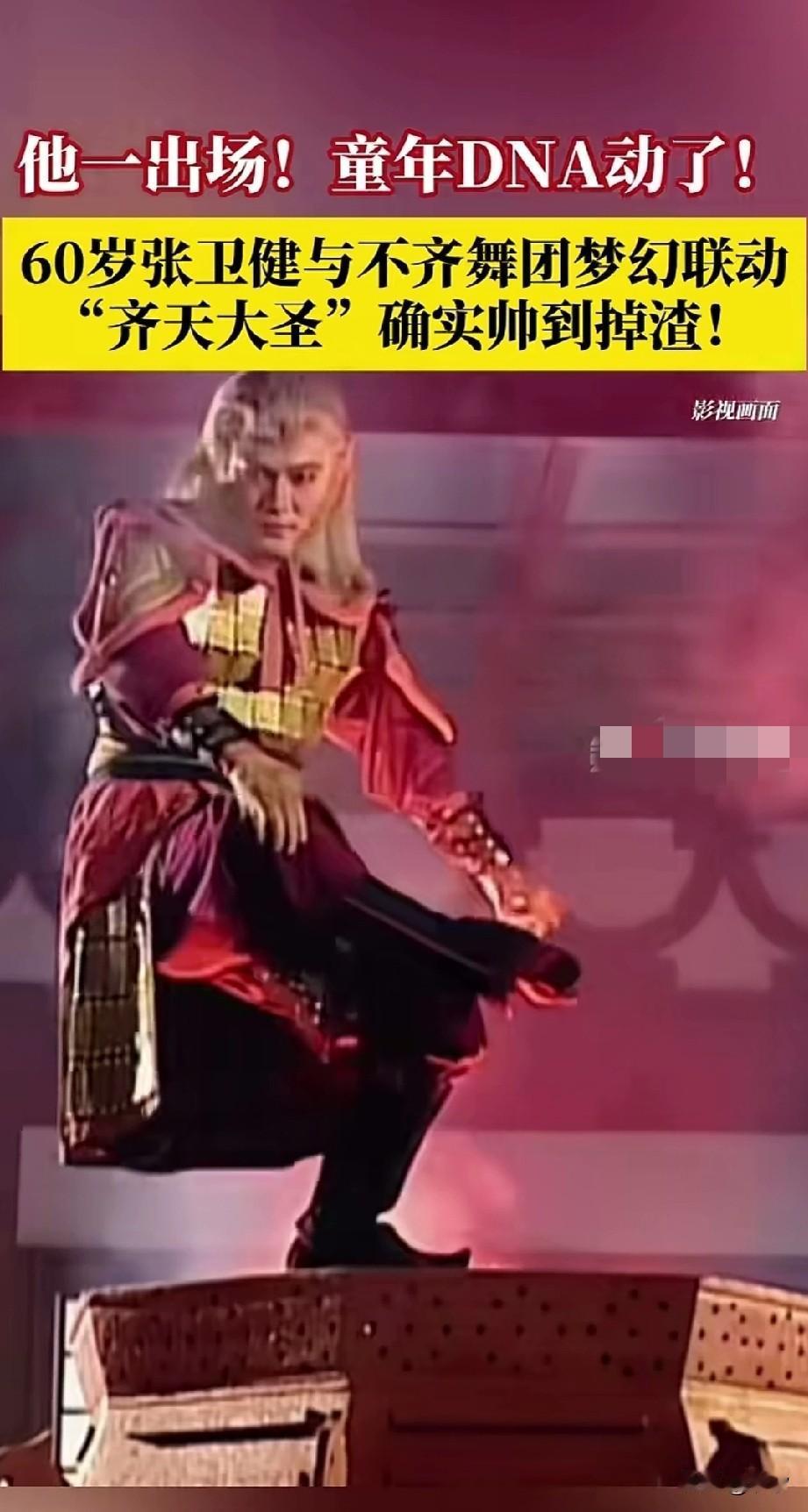 他一出场,过年的DNA就动了! 这话说的一点都不假! 张卫健演过很多角色! 但让人印象最深刻的就是美猴王! 那个猴子被他演绎的超帅, 也让人记住了他的样貌, 虽然后来他演了许多其他角色! 比如说方世玉, 但大家印象深刻的还是美猴王, 他的美猴王超霸气! 这也非常的洒脱,调皮! 如今年龄大了, 虽然是秃顶! 但依旧挡不住他帅气的容颜! 如今60岁的张卫健和不齐舞团梦幻联动,齐天大圣确实帅到掉渣! 大家有看过他演过的齐天大圣美猴王吗? 张卫健 搞怪美猴王