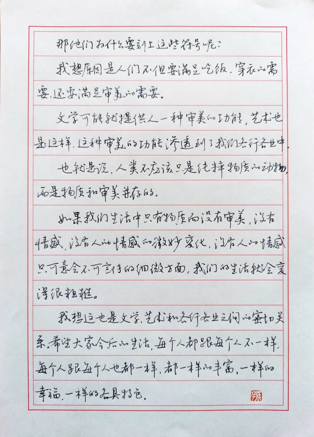 硬笔行书手抄莫言散文《文学是无用的东西》