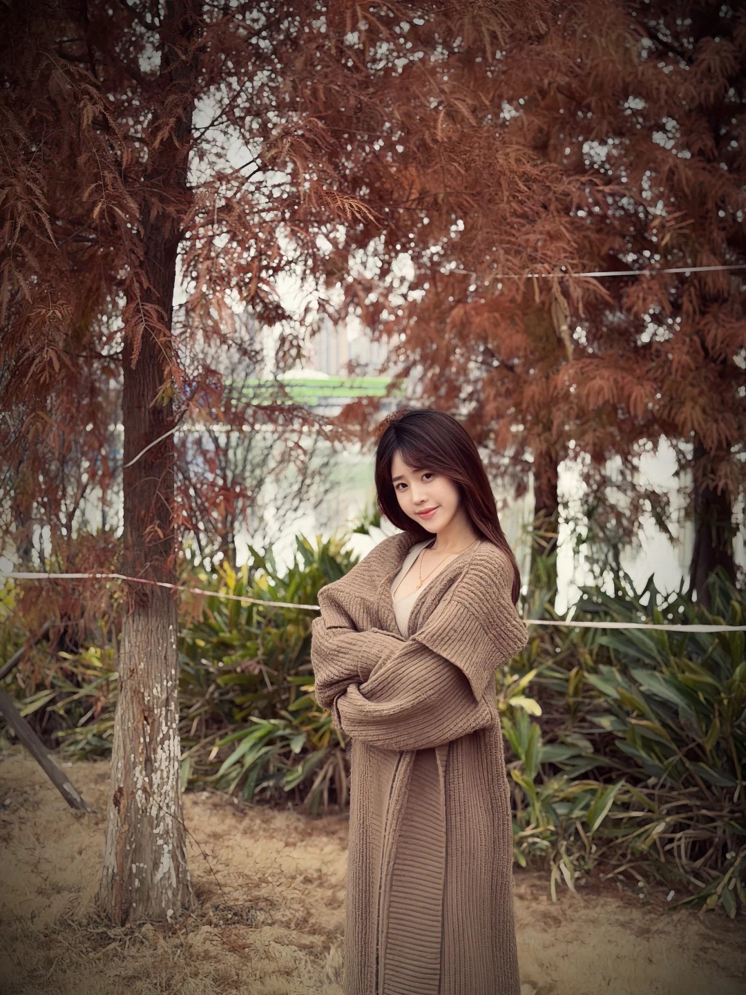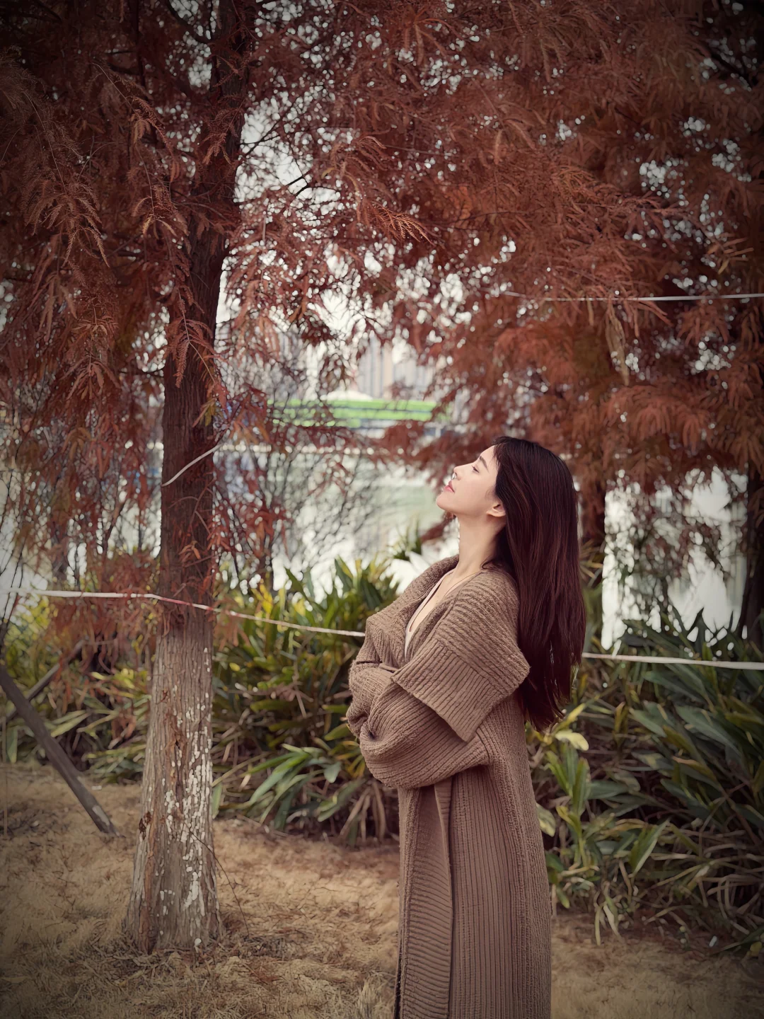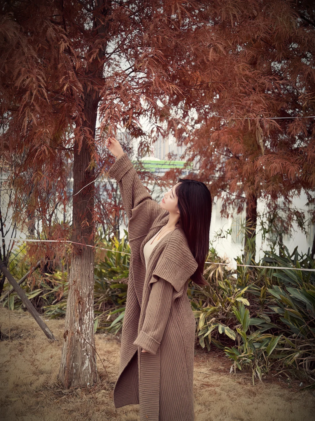 2. 👗 穿搭建议:棕色系大衣、浅米色针织衫、美拉德色系围巾,与红杉的暖调完美呼应。
