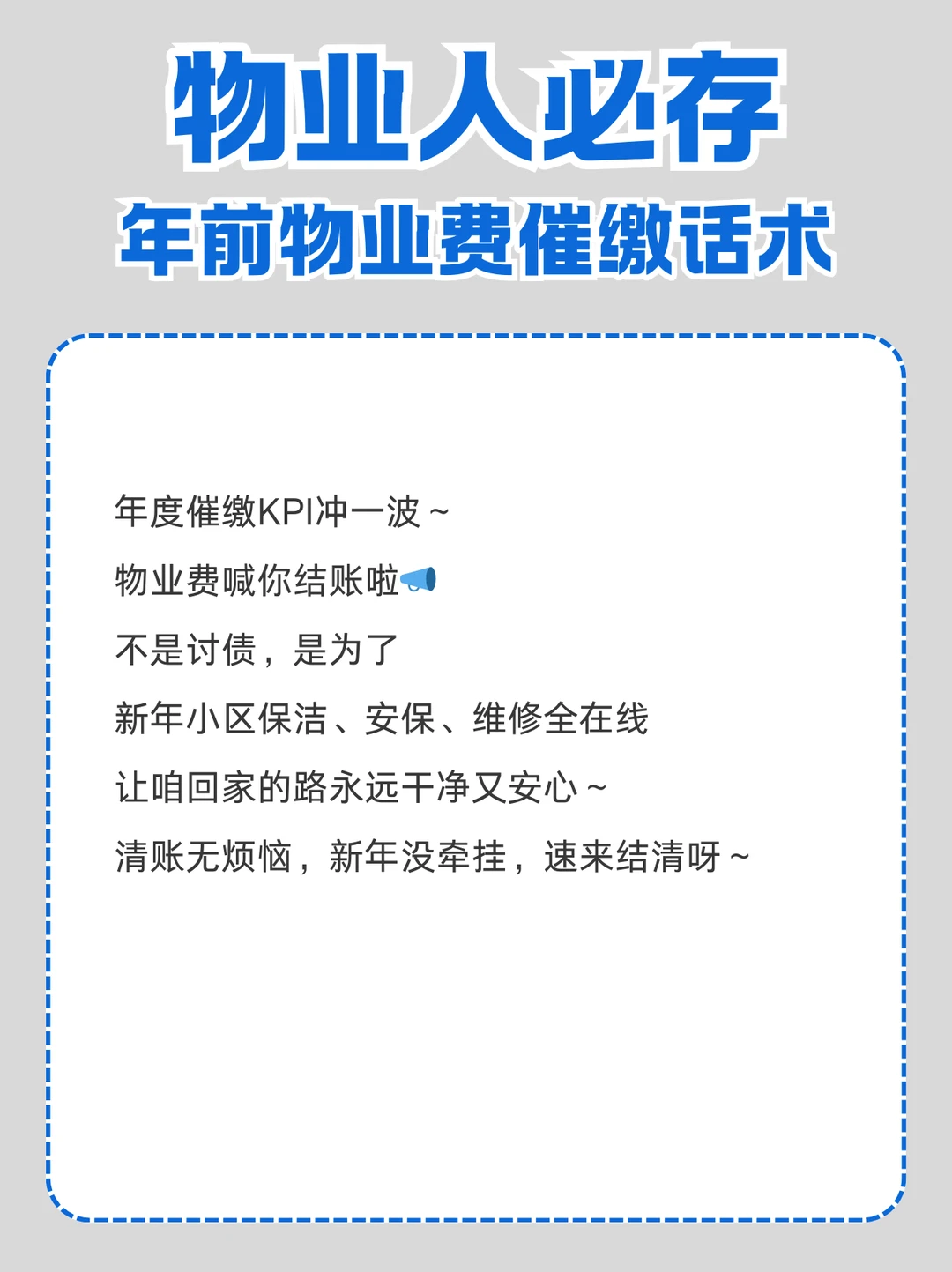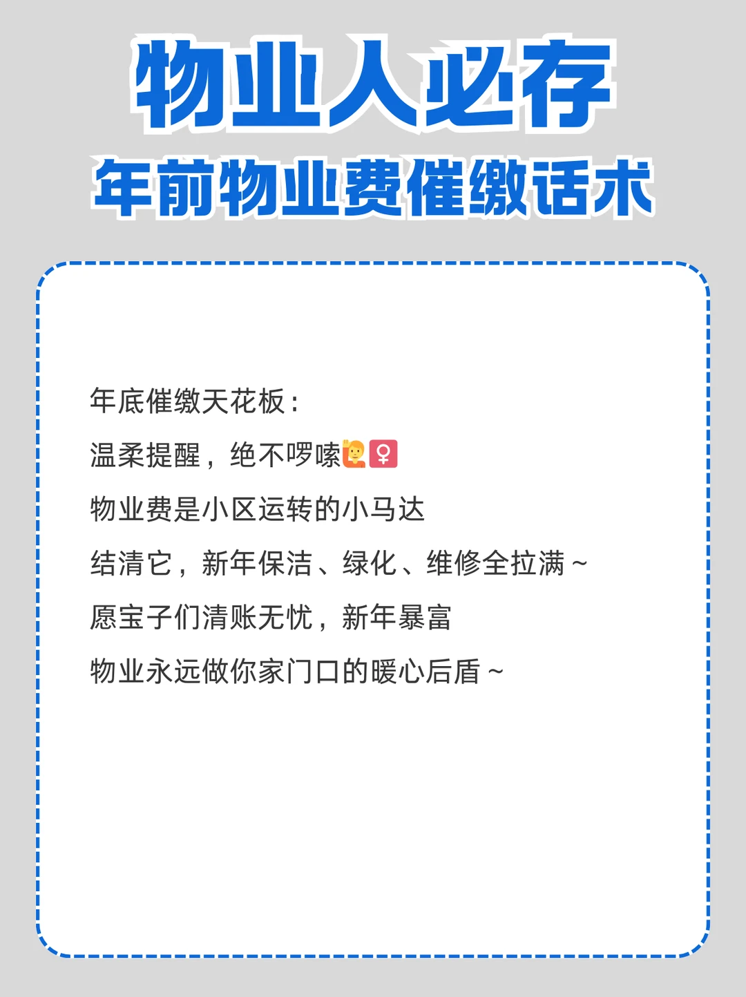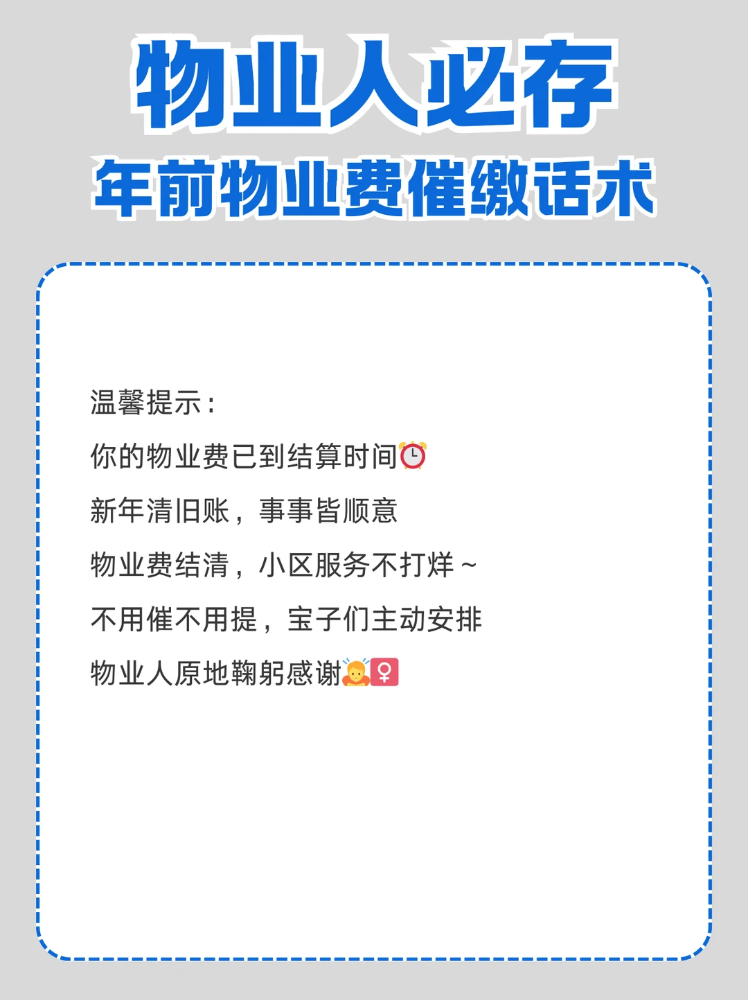 物业人必存,年前高情商催缴话术