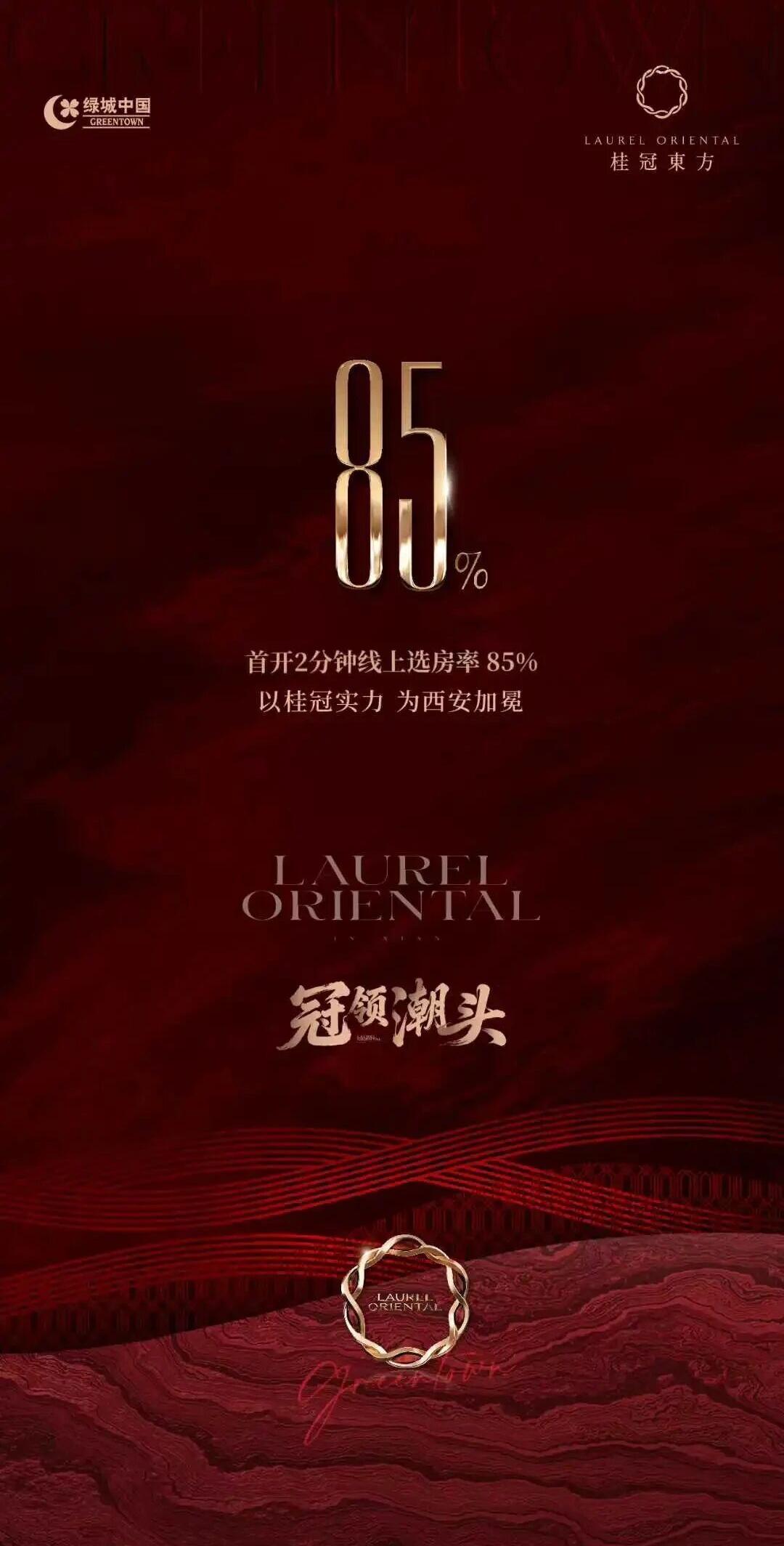 最新!西安奥体中心备受的关注的“绿城桂冠东方项目”迎来首开,·官宣:首开2分钟线上选房率85%... 绿城桂冠东方项目位于西安浐灞国际港港泽路与全运路交汇处,这是绿城在6月10日所摘地块,也是目前港务区的地王项目,处于奥体板块的白菜心位置。 项目占地约46亩,容积率2.5,规划7栋17-24层住宅,产品建面约180-278㎡,以“九重降噪系统“、”八角晶钻立面“、“两大下沉式庭院”等,打造奥体核心高端改善住宅。 项目西侧长安乐艺术中心、水晶汇溪广场商业,北侧奥体三场馆、地铁14号线地铁口,南侧高新一中陆港学校,囊括了整个奥体南最优质的配套资源。 项目首开推出了一栋楼,建面约180㎡户型,共计60套,均价24453元/㎡,总价门槛约400万。虽门槛不低,但凭借“地段+产品”双稀缺性,仍吸引大批高净值人群关注。 1月24日,项目正式开盘,绿城发布海报:官宣首开2分钟线上选房率85%...印证了西安楼市结构性分化趋势:核心地段优质资产仍然受追捧。