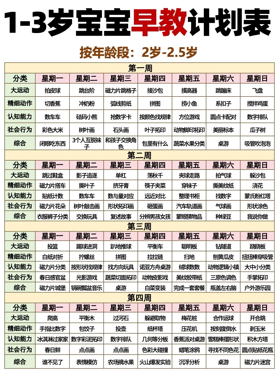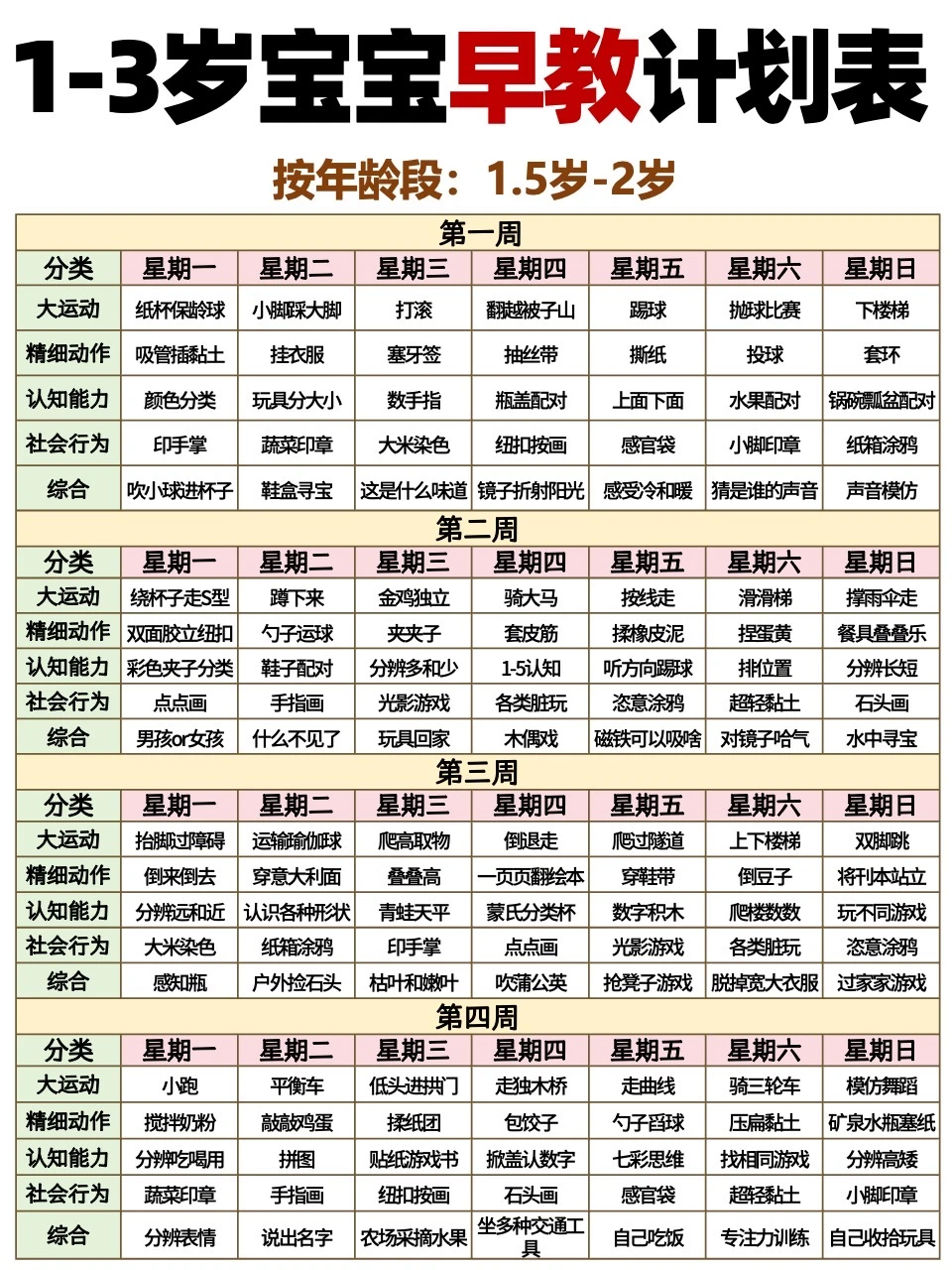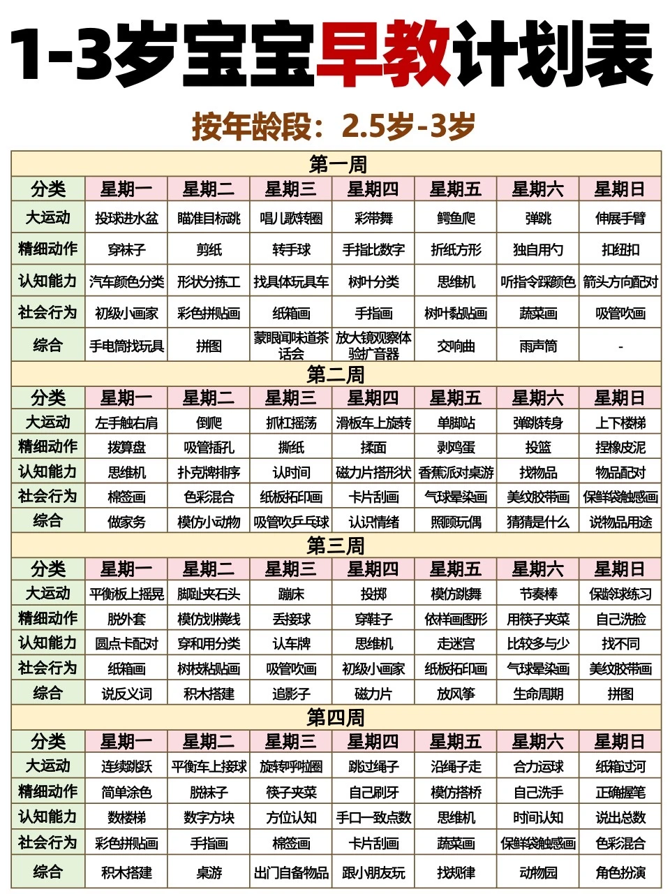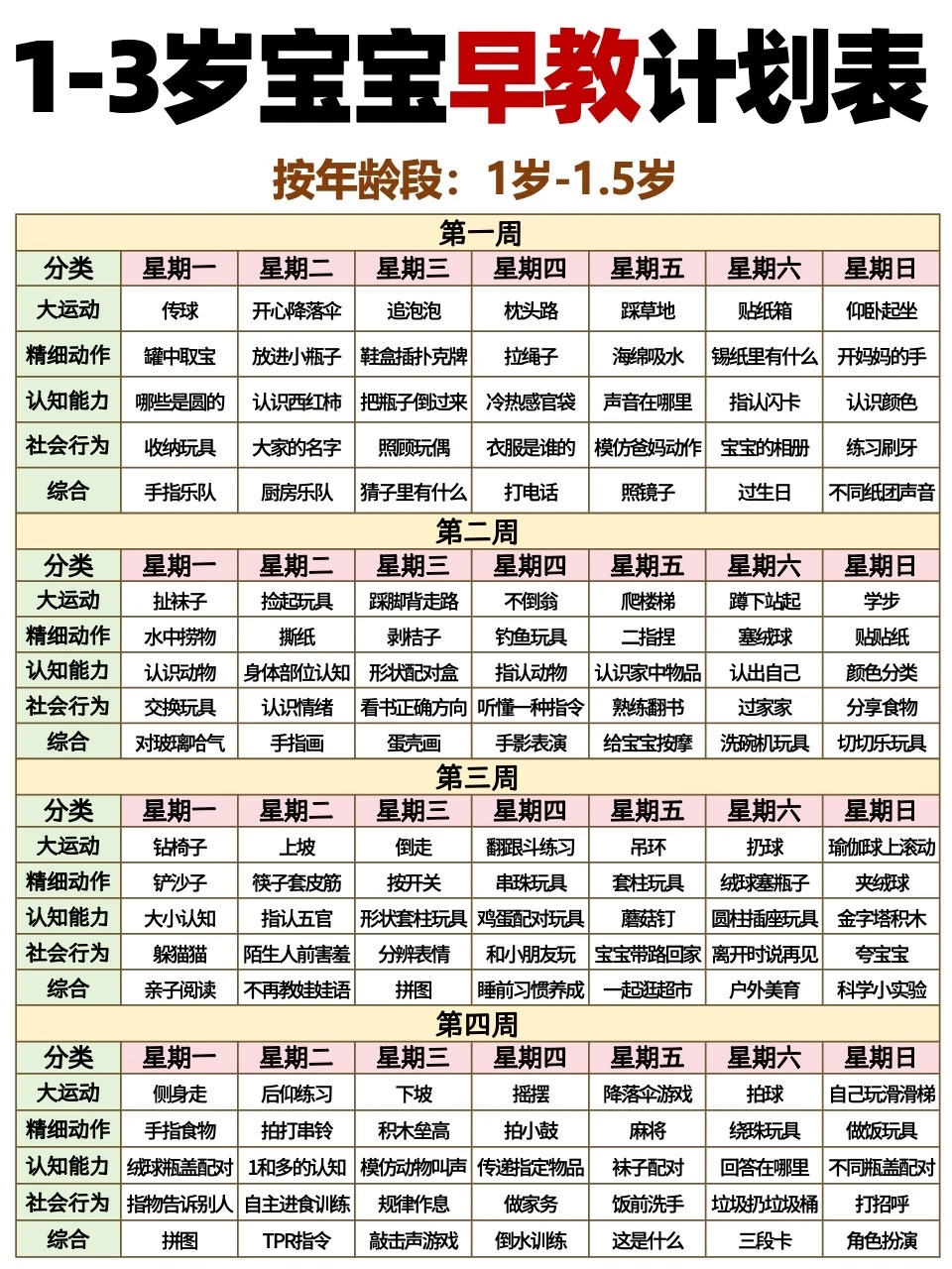 1-3岁宝宝每周早教计划表📝抄作业‼️