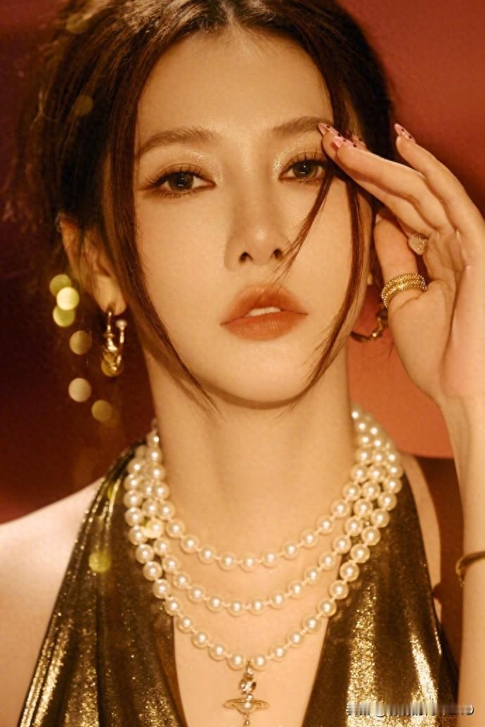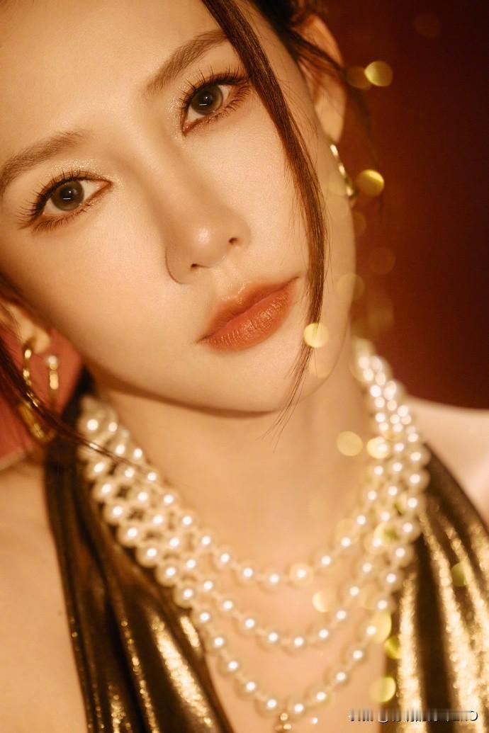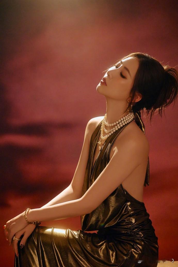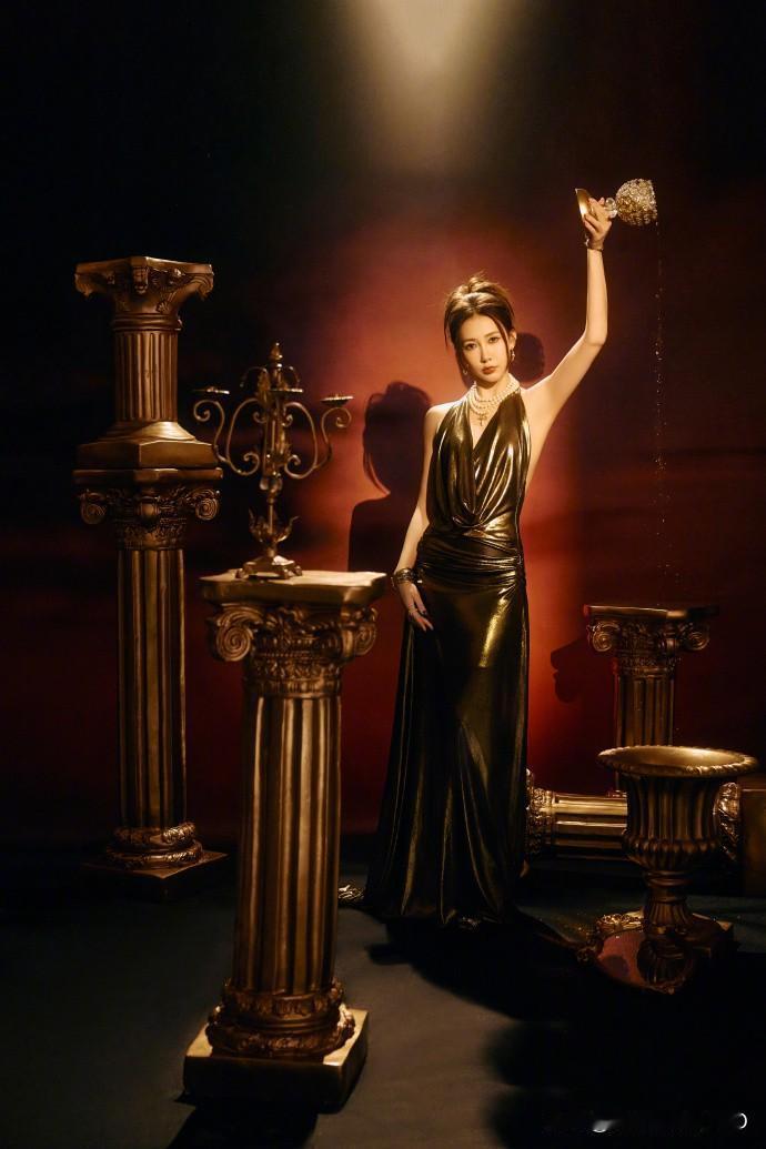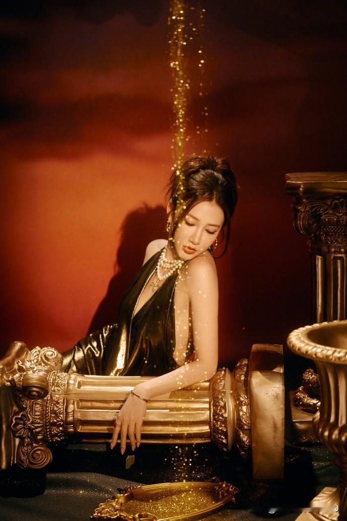弦子穿金色礼服裙写真,高贵优雅真有韵味