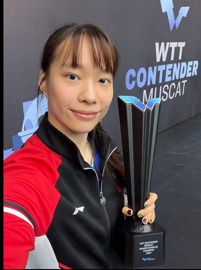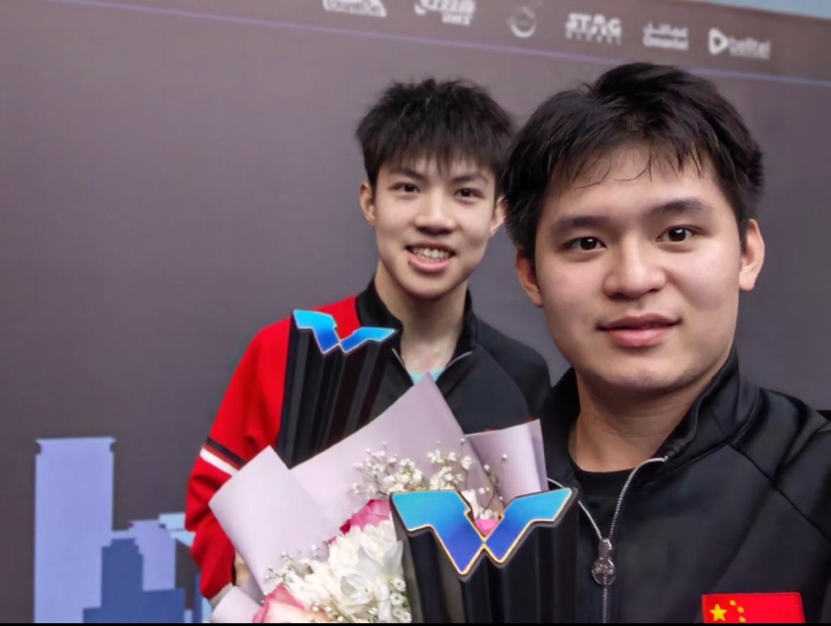 WTT马斯喀特常规挑战赛各项目冠军自拍——林诗栋/黄友政笑的最可爱😍! 林诗栋/黄友政的男双冠军自拍, 小石头拍的好,笑得好开心, 黄友政有点稚气未脱,笑容很 腼腆! 林诗栋太需要一个冠军给自己 增加自信😎! 女双冠军覃予宣/纵歌曼, 覃予宣少年老成,自拍也那么 从容不迫! 石洵瑶夺得女单冠军, 一脸兴奋! 小将温瑞博首次拿到成人赛冠军, 高兴的自拍时相对生疏! 马斯喀特站, 国乒队员都敢打敢拼, 取得了可喜的成绩, 期待1月27日—31日的多哈支线赛吧,小将温瑞博继续热血!