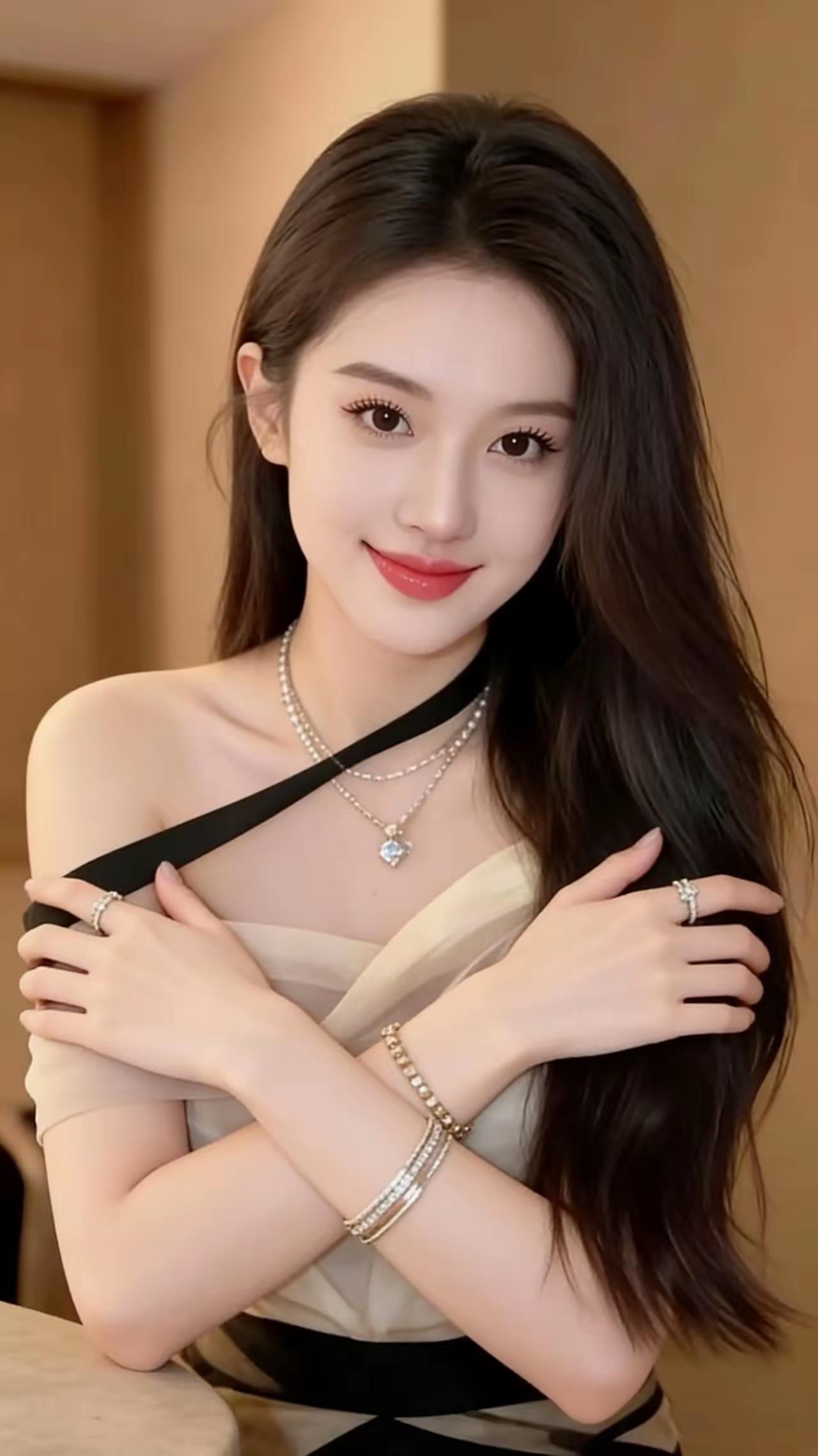 优雅气质,珍珠项链与黑裙的完美搭配,散发迷人魅力!