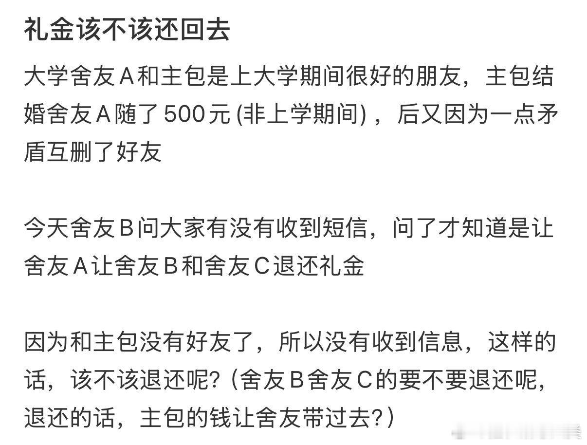 礼金是否应归还取决于情况。