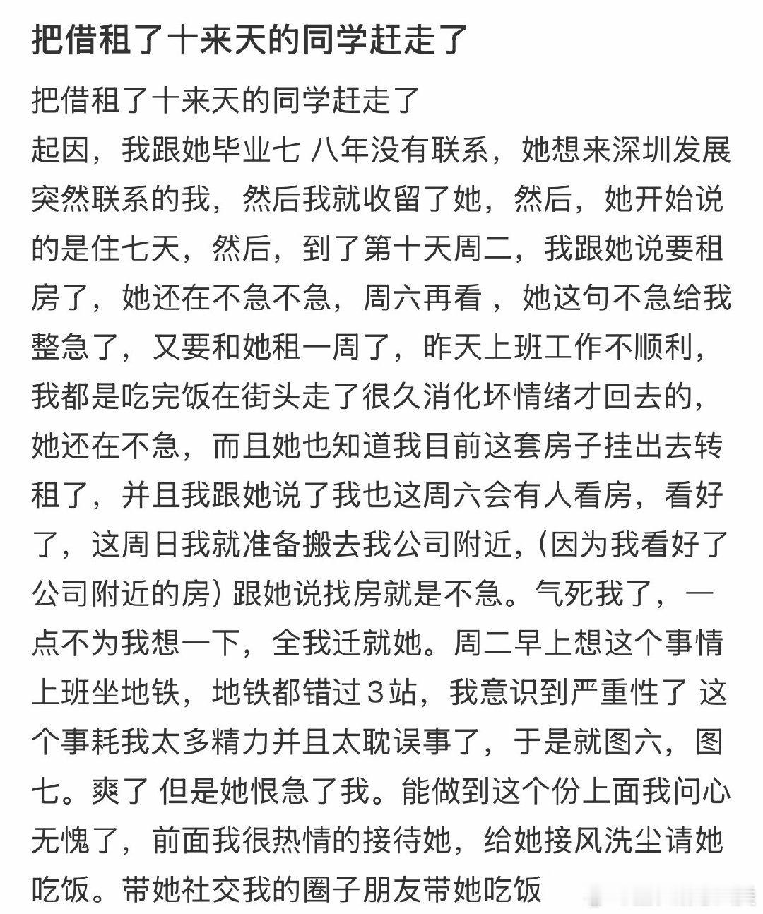 我因租期未满而赶走了借宿十天的同学。