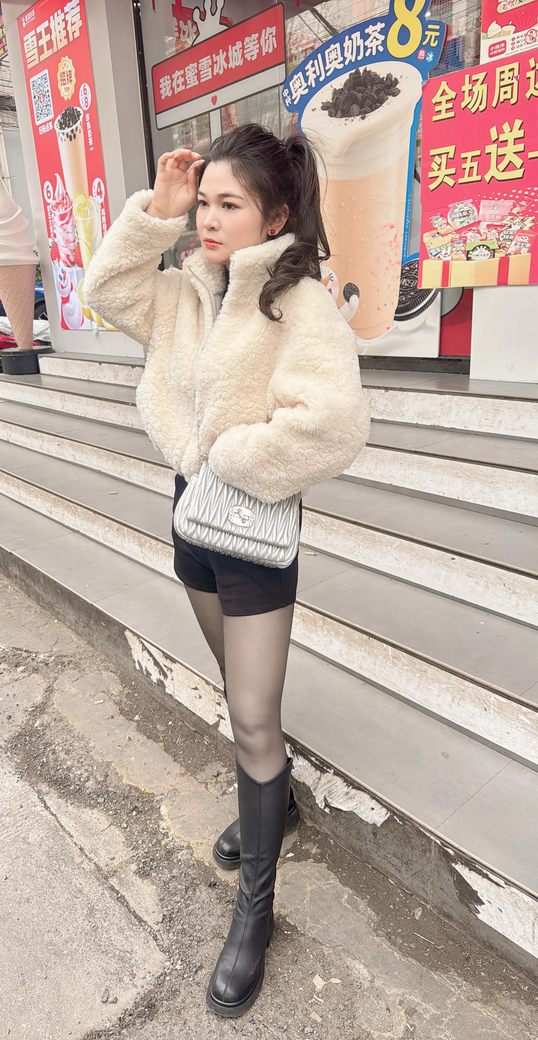 甜系女孩 奶茶店门口