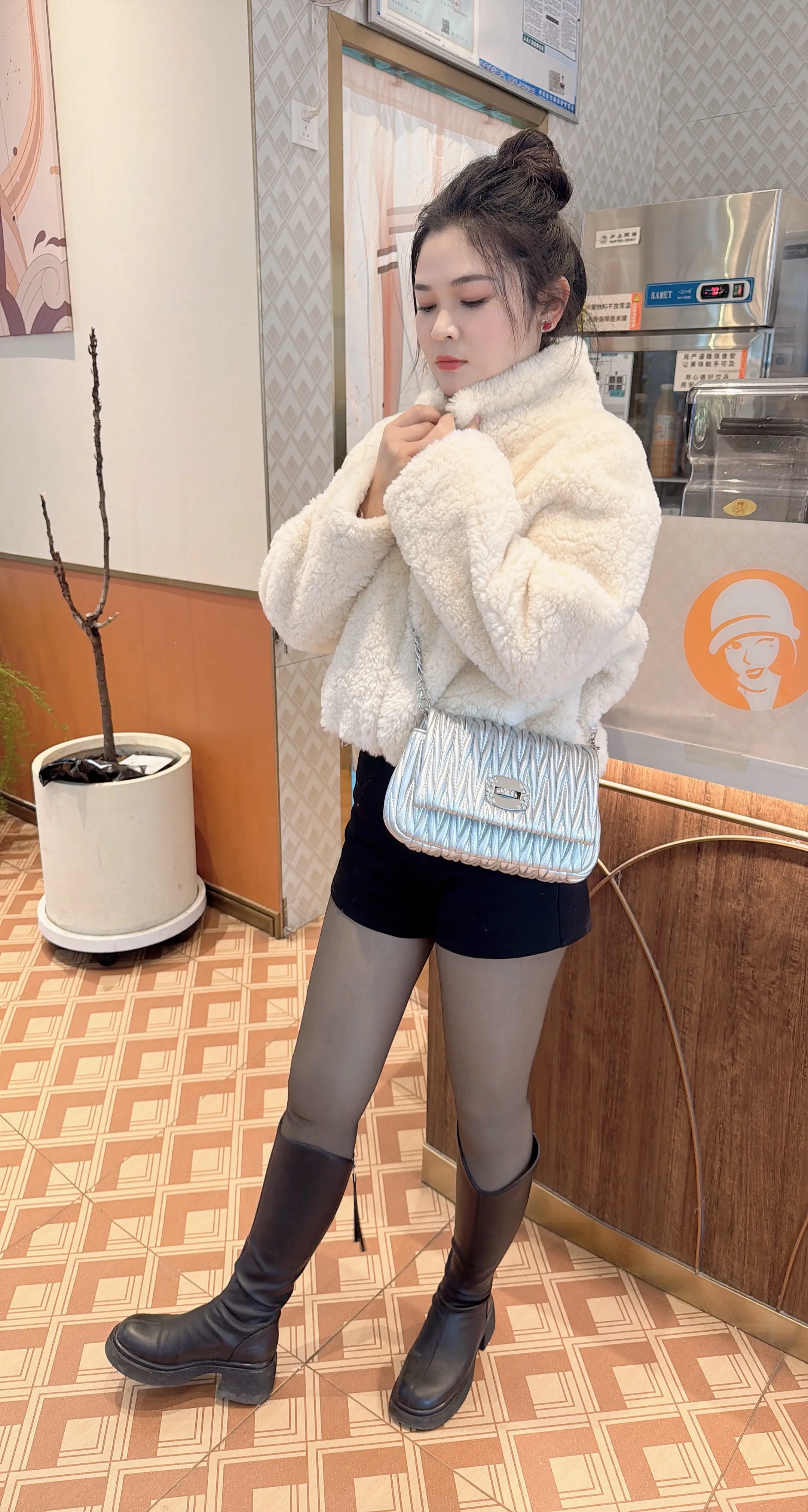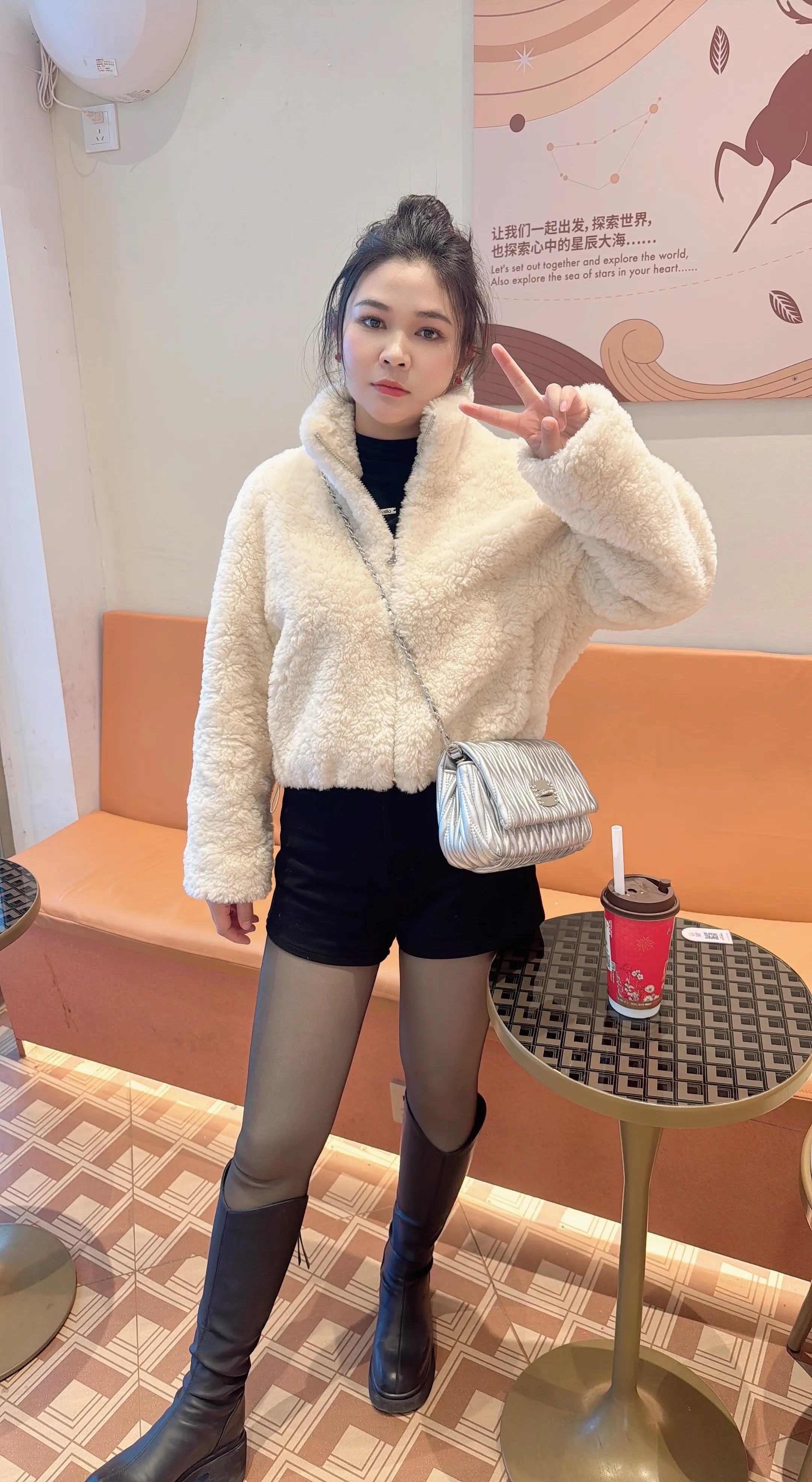 甜系女孩 奶茶店门口