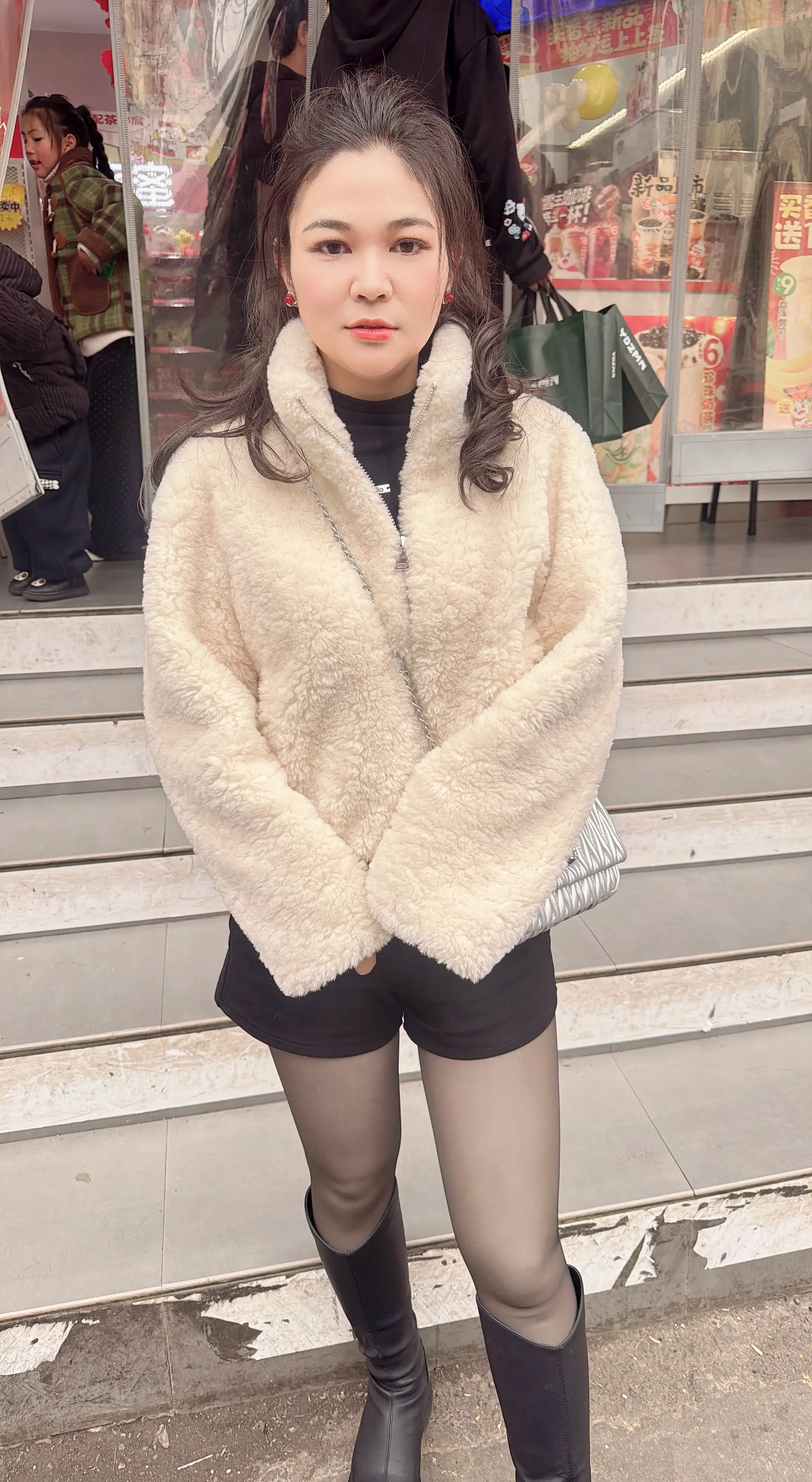 甜系女孩奶茶店门口