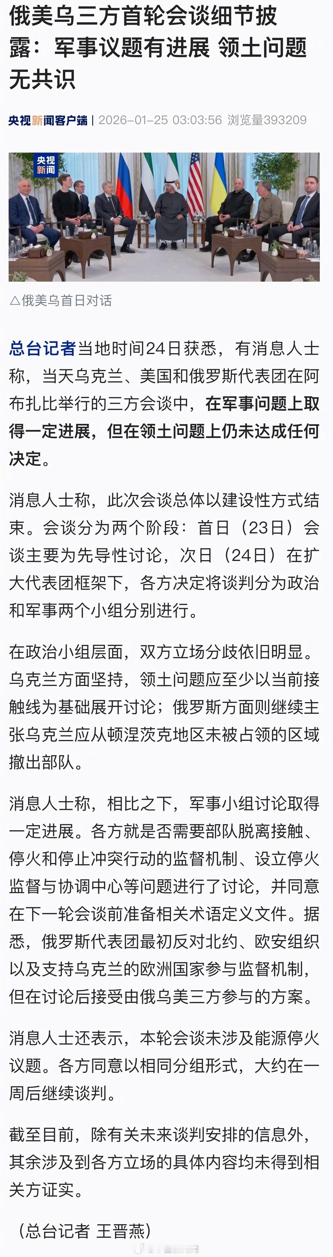 俄美乌首轮会谈细节披露。