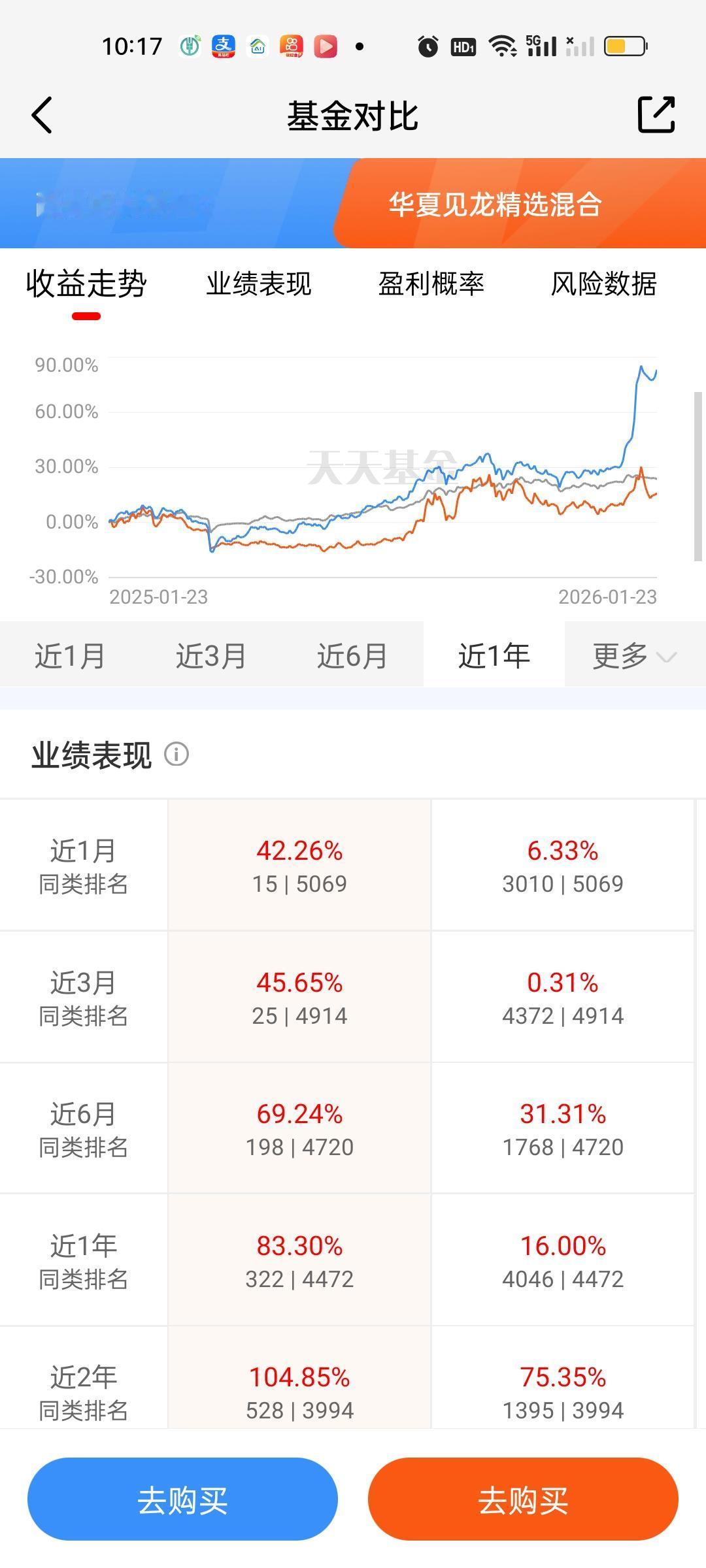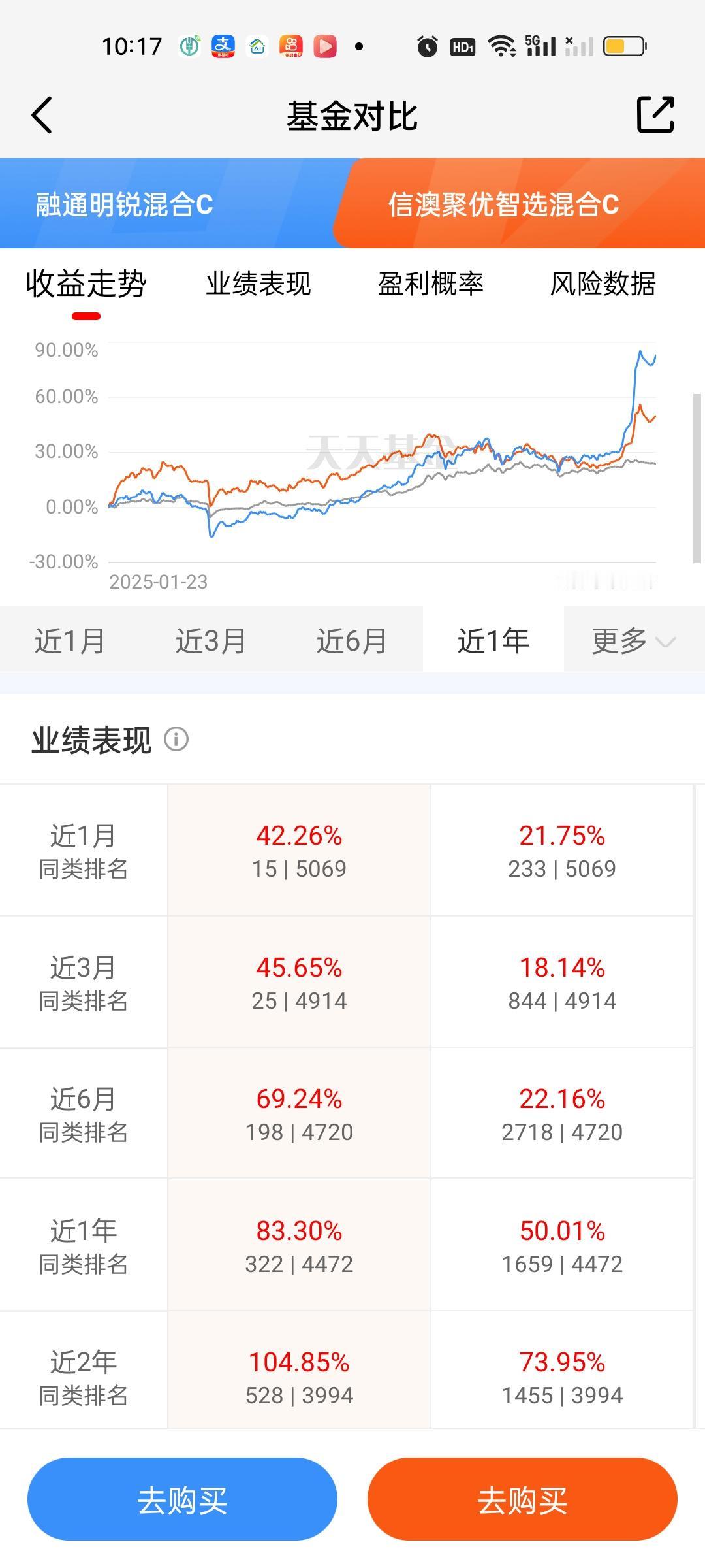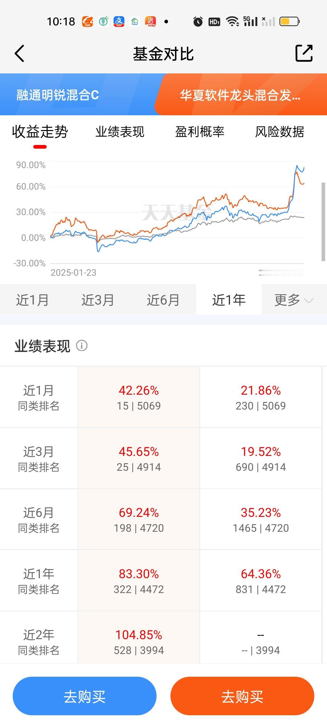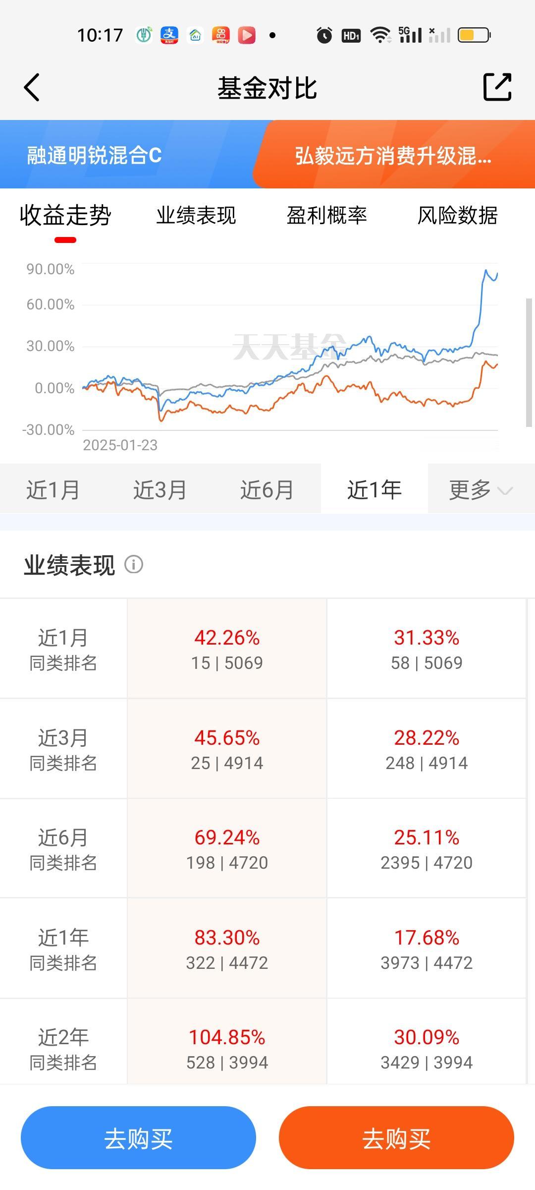 上一篇因为篇幅有限,AI应用板块还有多只对比图发不出来,这一篇补上。目前整个AI应用板块表现最好的还是明锐。它今年以来的收益在19100只基金里排名第一。曾几何时这个位置还属于德邦稳盈,当时AI应用板块一共还不到10只基金,可供选择的基金是非常少的,但基金经理一顿骚操作彻底葬送好局,连续多个交易日的超级低开把人品彻底败光。机会肯定不是每天都有的,有些机会错过了就错过了!