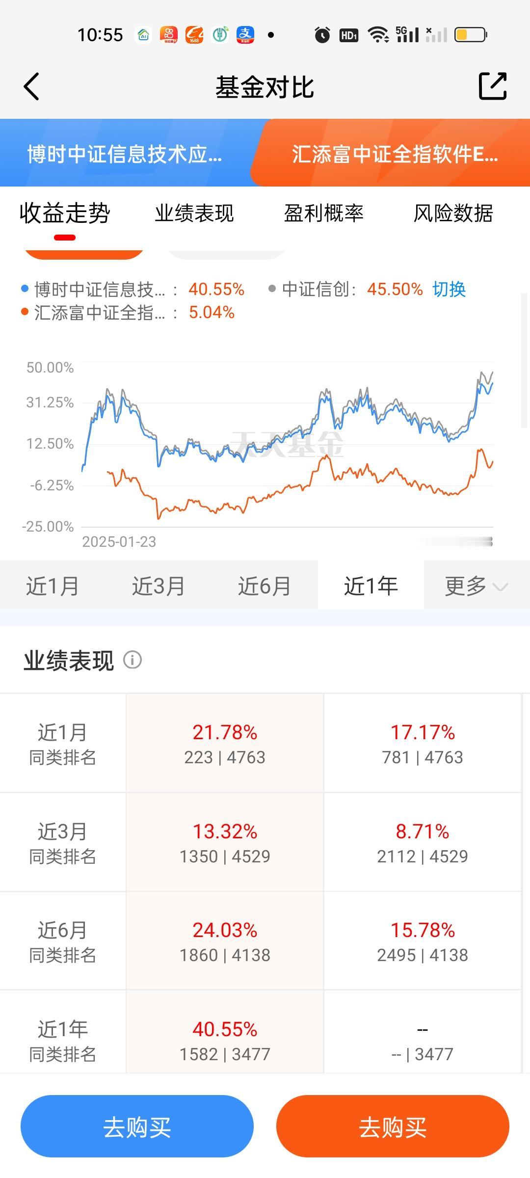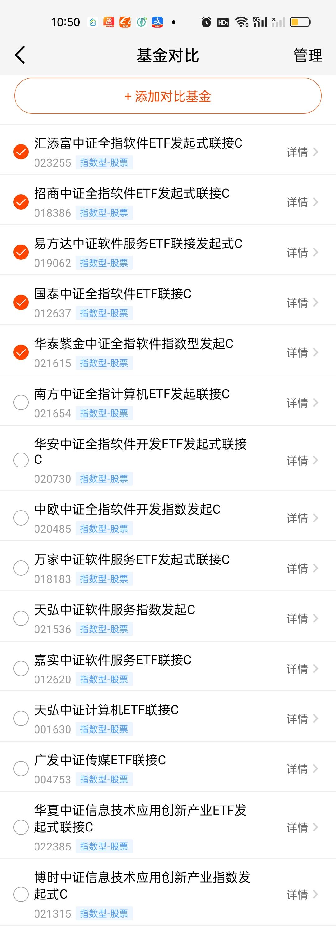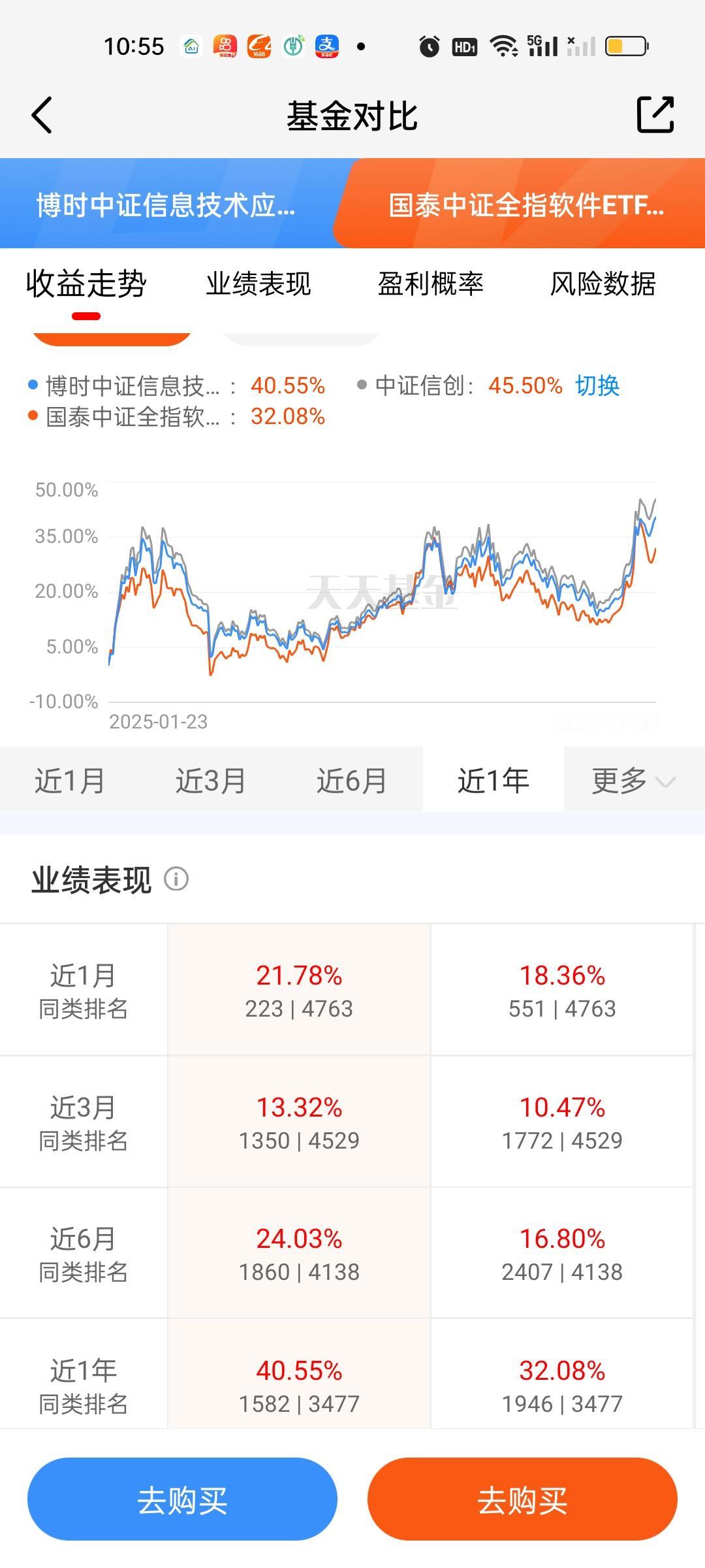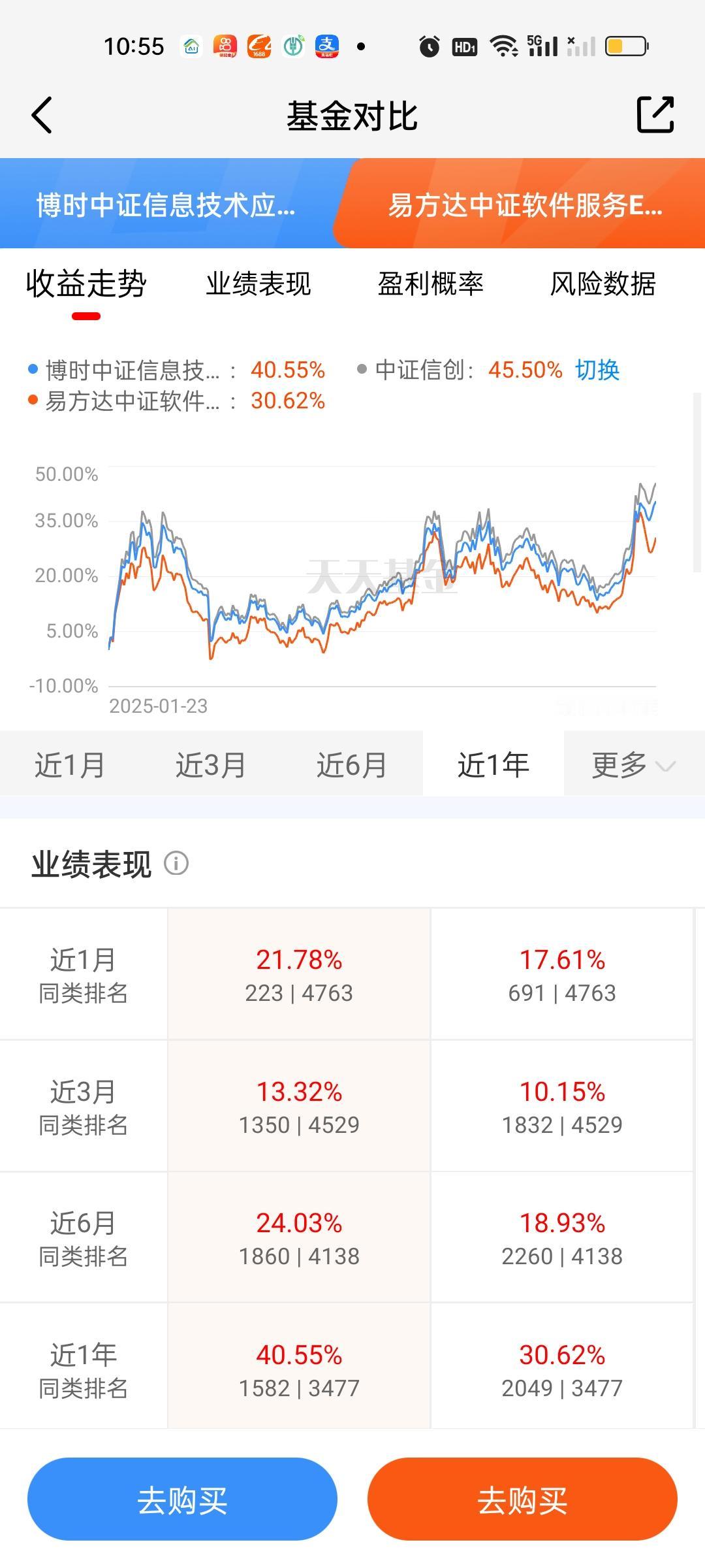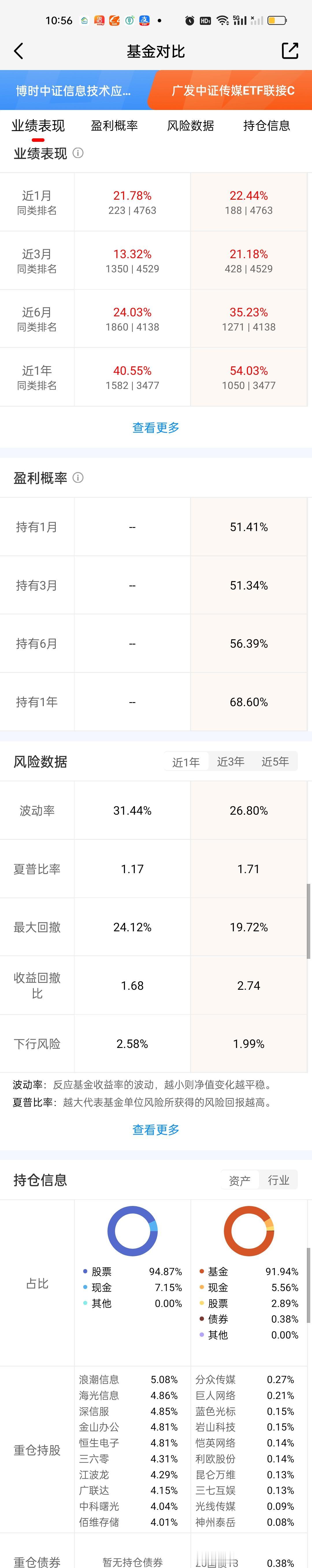 有些基民比较喜欢买入免费,持有7天免费赎回的七免型基金。这类基金只需要实际持有5个交易日就可以做到手续费全免,同样具备很强的吸引力。那AI应用板块指数型或者ETF联接基金的数据对比我们也来做一下。 数据来看,博时中证信息技术应用和华夏中证信息技术应用基本相当,随便选哪只都是可以的,两只基金收取的手续费费率也是一样的。广发中证传媒ETF联接这里不能认为是纯正的AI应用基,有点像是传媒游戏板块。所以尽管收益率和风险数据对比都有很大优势,但这里要打个问号!