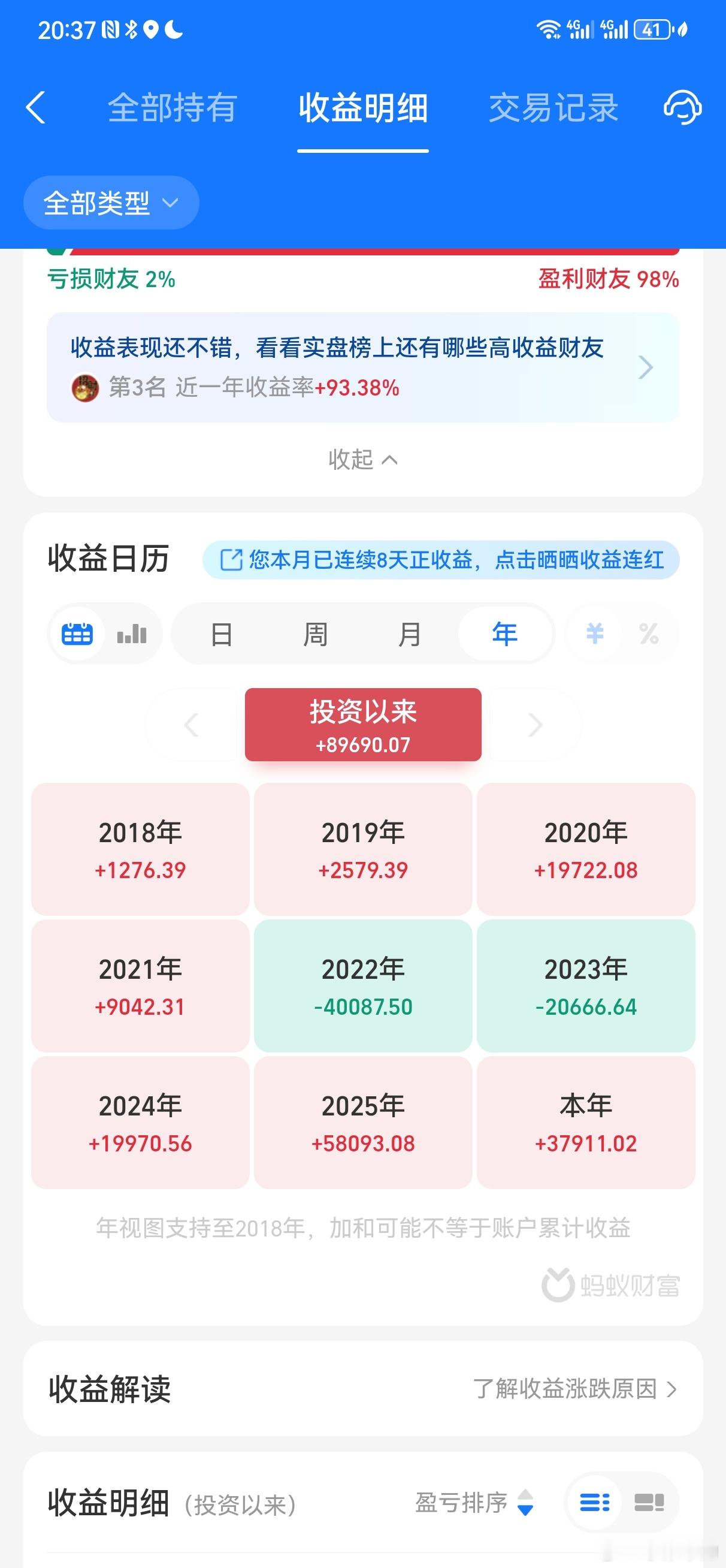 塞翁失马,焉知非福!这句话真的蕴含老祖宗的智慧!22-23年时,买基金和股票亏了10多万!然后那时候伤心之下,把大部分都转去了黄金和债基避险!狠心割肉离场…现在那笔黄金的利润都有8万了!银行的积存金也挣了10多万!不仅回本了,还挣了不少!如果还坚持持有那些热门基金,不知道回本了没有?那两年,你们挣钱了吗?亦或是和我一样高位接盘了?