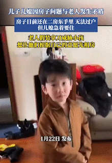 我不信,世间真有这样的事儿。 1月22日网上盛传这样一段视频,儿子儿媳疑与老人发生矛盾,起因是房子还在二房东手里,目前根本没法过户,但是儿媳急着非得要住。老人让儿媳一家先去租房,假装拿刀威胁孙子,被儿子按在床上一动不动…… 竟然有这样的家庭,实在难以想象。我跟感觉老人拿刀虽然不对,但是整体看下来是儿子儿媳要抢老人的房子,老人打也打不过骂也骂不过,没有办法才拿刀“防守反击”。孙子满脸是泪,苦喊着“我不想死”,在我看来其实就是儿子儿子教唆下的表演,儿子儿媳如此对待老人,孙子将来必然有样学样对待父母。我是一个山东人,说实话我不敢不孝,因为前有车后有辙。 但是网上视频没头没尾,要说是剧本但演得太真了,只有一种解释:老太是后妈,老伴死了,老头的儿子儿媳来抢财产。