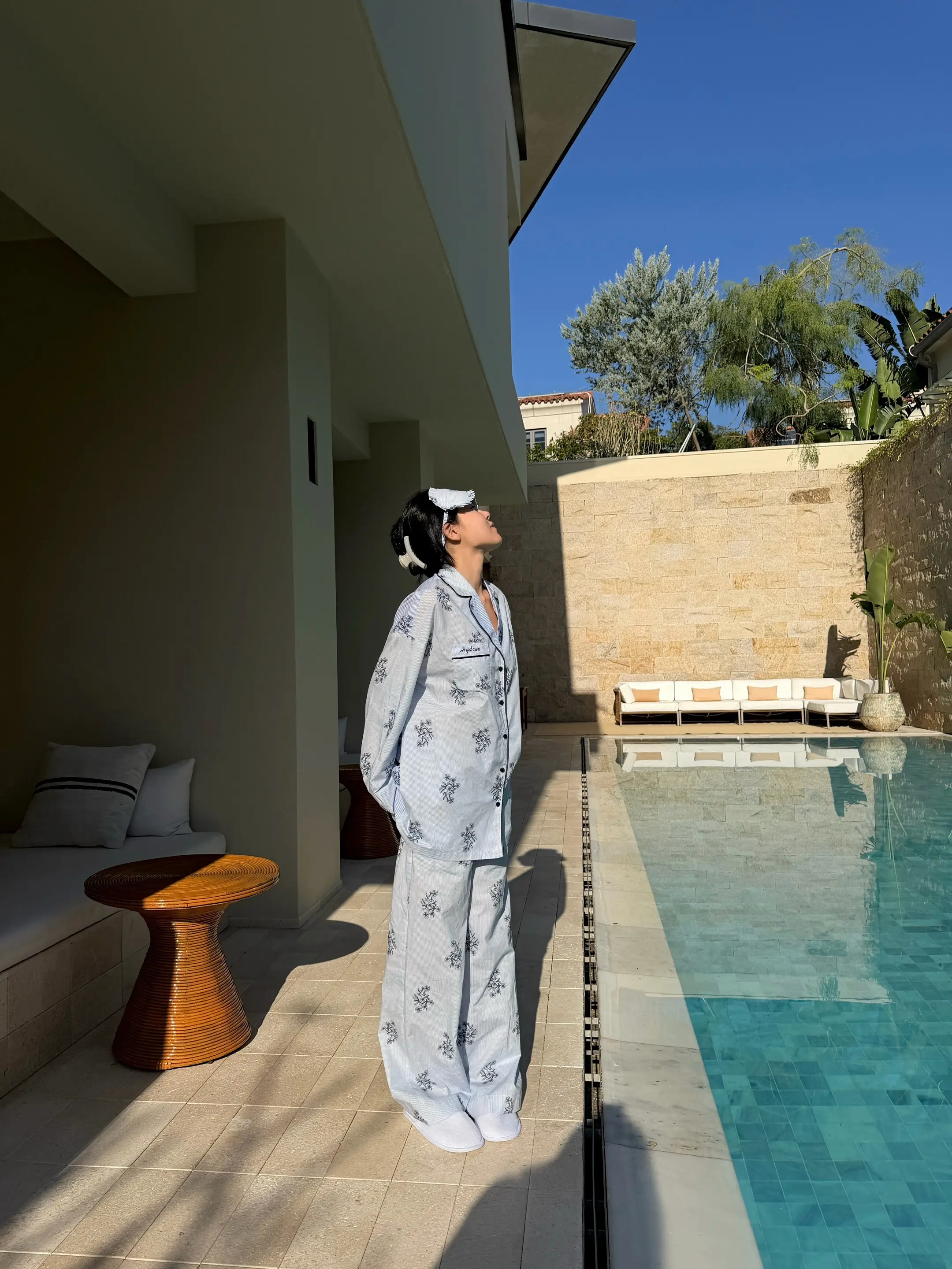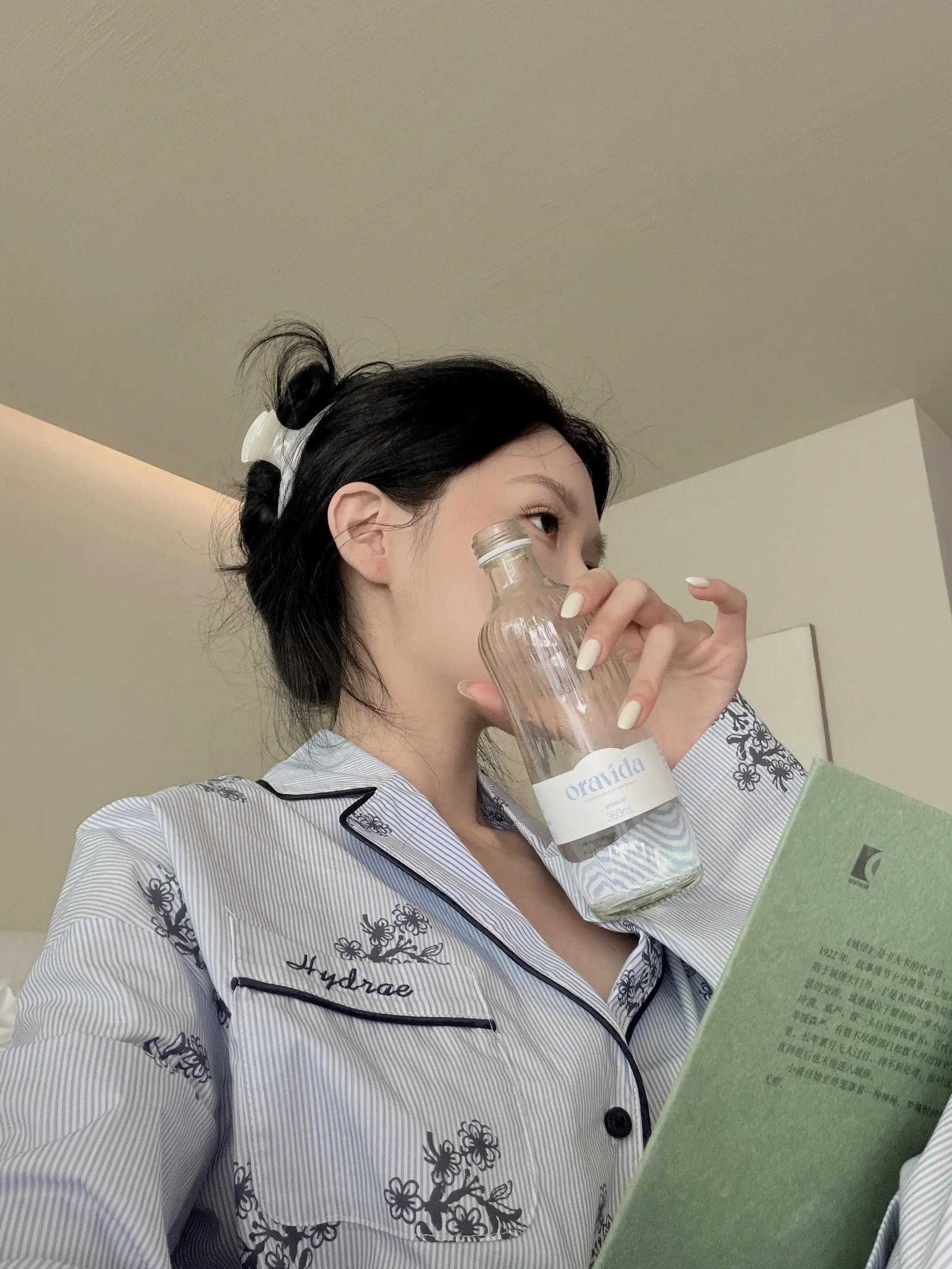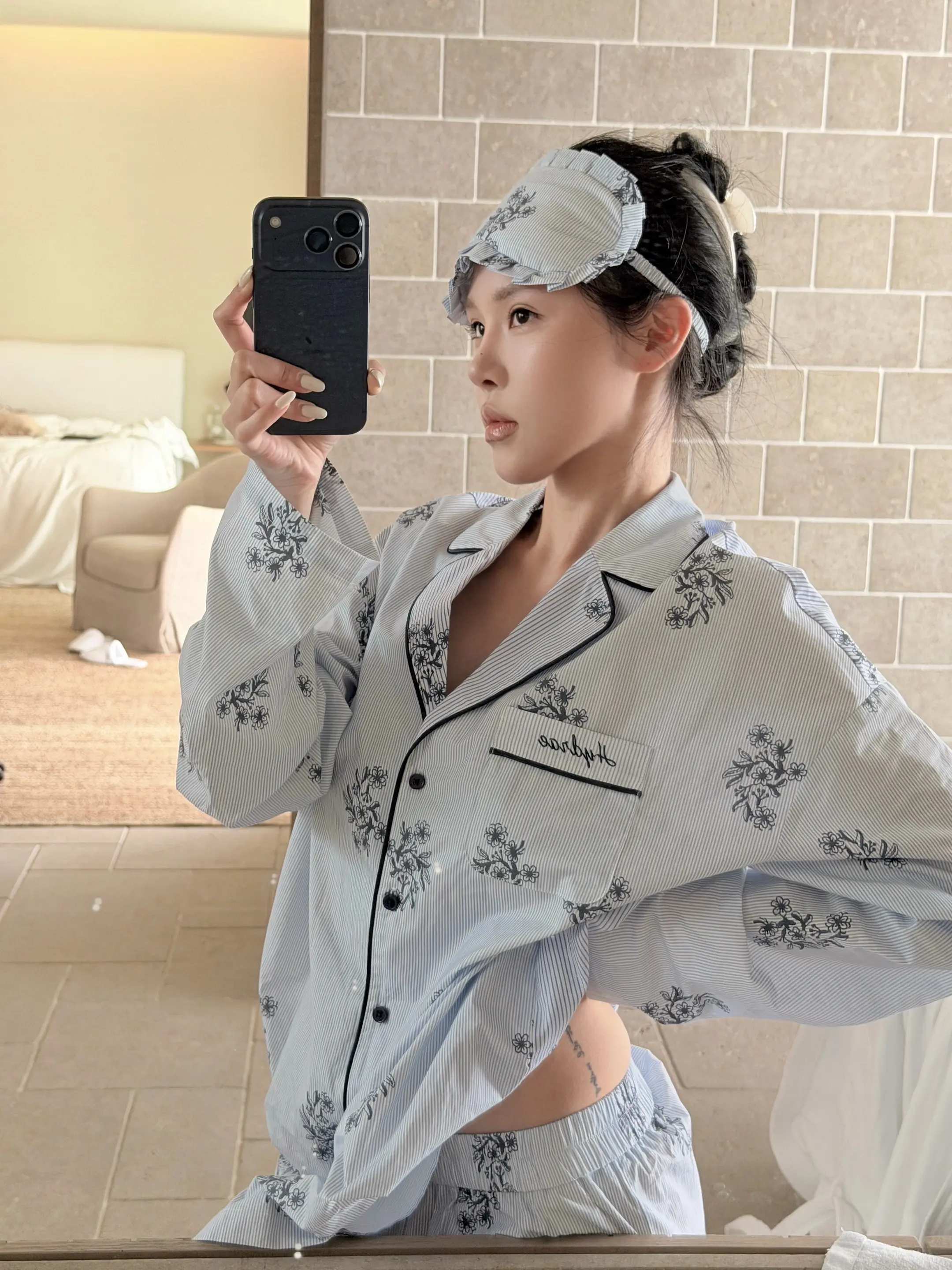 竖条纹旗袍的开叉恰到好处,衬得腿型修长,线条舒展而柔和;肤色均匀且细腻,姿态优雅