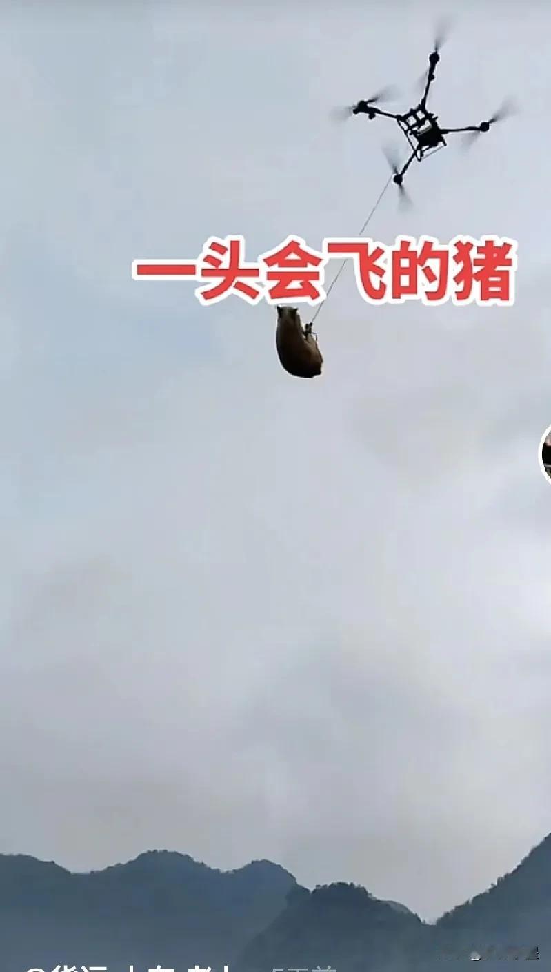 不怕猪会飞,就怕下不来! 现在无人机的用途真是越来越广泛了! 在四川出了这么一档子有趣的事,有人突发奇想,用无人机从山顶往山脚运输生猪,由于天黑视野不清楚,结果刚运第一头猪的时候就发生了意外,无人机挂到电线上下不来了,直接导致当地停电十个小时! 跟无人机一块下不来的还有一头鲜活的生猪,也不知道它恐高不,害怕不! 见过无人机给农田打农药施肥的,吊运农产品的,用它吊生猪的还是头一次听说,难道不怕生猪在空中折腾吗,可能🐖被吊到天上时就吓傻了,老实了吧!