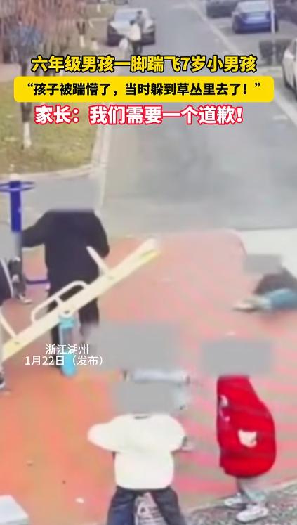 “天生坏种!”浙江,一男子见儿子迟迟不回家,便下楼寻找,结果在草丛发现儿子蹲那哭泣,身上还有个脚印。事后查监控,才得知儿子被一名六年级男孩狠狠踹飞,并且对方家长毫无歉意!网友:必须严惩! 事情的起因是郑先生(化名)在家把饭菜已经准备好,可他的儿子却迟迟没有回家,焦急的郑先生下楼寻找,心里充满了疑惑和不安,当他走到小区的草丛边时,突然听见了儿子的哭声。 他匆匆奔过去,只见儿子满脸泪痕,更让他怒不可遏的是,孩子身上有个硕大脚印,显然是遭了欺负,刹那间,郑先生的心如坠深渊。他急切地询问儿子到底是怎么回事,儿子哽咽着说,自己在放学回家的路上被一个陌生的六年级男孩无缘无故踹飞,随后那名男孩便离开了现场。 郑先生立刻报警并将儿子带回家,等待警方的进一步调查,事后,他查看了小区的监控视频,才了解到整个事件的真相,视频中显示那名六年级男孩冲上来,一脚踹在儿子的腹部,致使他摔倒在地,男孩似乎并没有任何预兆,也没有什么明显的动机,事件发生得十分突然,令人不解。 郑先生在报警后联系了小男孩的家长,但令他感到失望的是,对方家长并未表现出任何歉意,反而推诿责任,认为是孩子之间的小冲突,郑先生心头的怒火越烧越旺,不仅仅是因为儿子遭受了暴力,更多的是因为对方家长的态度让人无法接受。 网友们得知事件后纷纷评论,部分网友支持郑先生的立场,认为孩子间的冲突应该由家长负责,而不能一味推卸责任,更有不少人表示,家长的态度反映了教育的失败,若不严肃处理,类似的事情可能还会发生。 目前,案件已交由警方处理,郑先生也表示,除了希望为儿子讨回公道外,更希望通过此事引起社会对于儿童暴力行为的关注,郑先生也表示,无论最终结果如何,他都会坚持为儿子争取正义,绝不轻易妥协。 这一事件引发了社会的广泛讨论,尤其是对于家长责任和儿童行为问题的探讨,郑先生不仅为儿子讨回了公道,更为社会敲响了警钟,家长的责任不仅仅是养育孩子,更要为他们的行为负责。 信息来源 :小强热线浙江教科