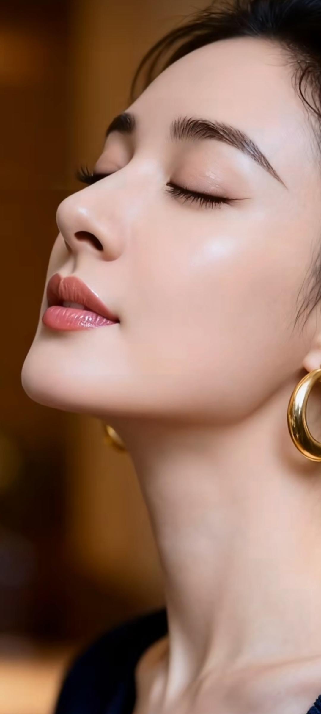 闭眼沉思的优雅瞬间,金环耳饰点缀,尽显温柔与高贵。