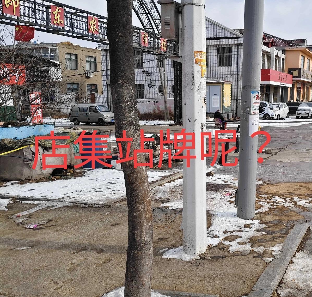 即墨区金口镇店集即东农贸市场门口的店集公交站牌(即墨汽车总站方向)哪里去了,是不是被偷走了?记得这个站牌去年就没有了,在附近也没找到,现在只剩下马路斜对面的店集站牌(金口,丰城方向)。当时发过一篇微头条反映过,这都半年了,店集站牌还没恢复,经常坐车的人知道站牌位置,那些不经常坐的找不到站牌真的没法坐车,没有站牌很不方便,希望有关部门把这个站牌恢复一下。
