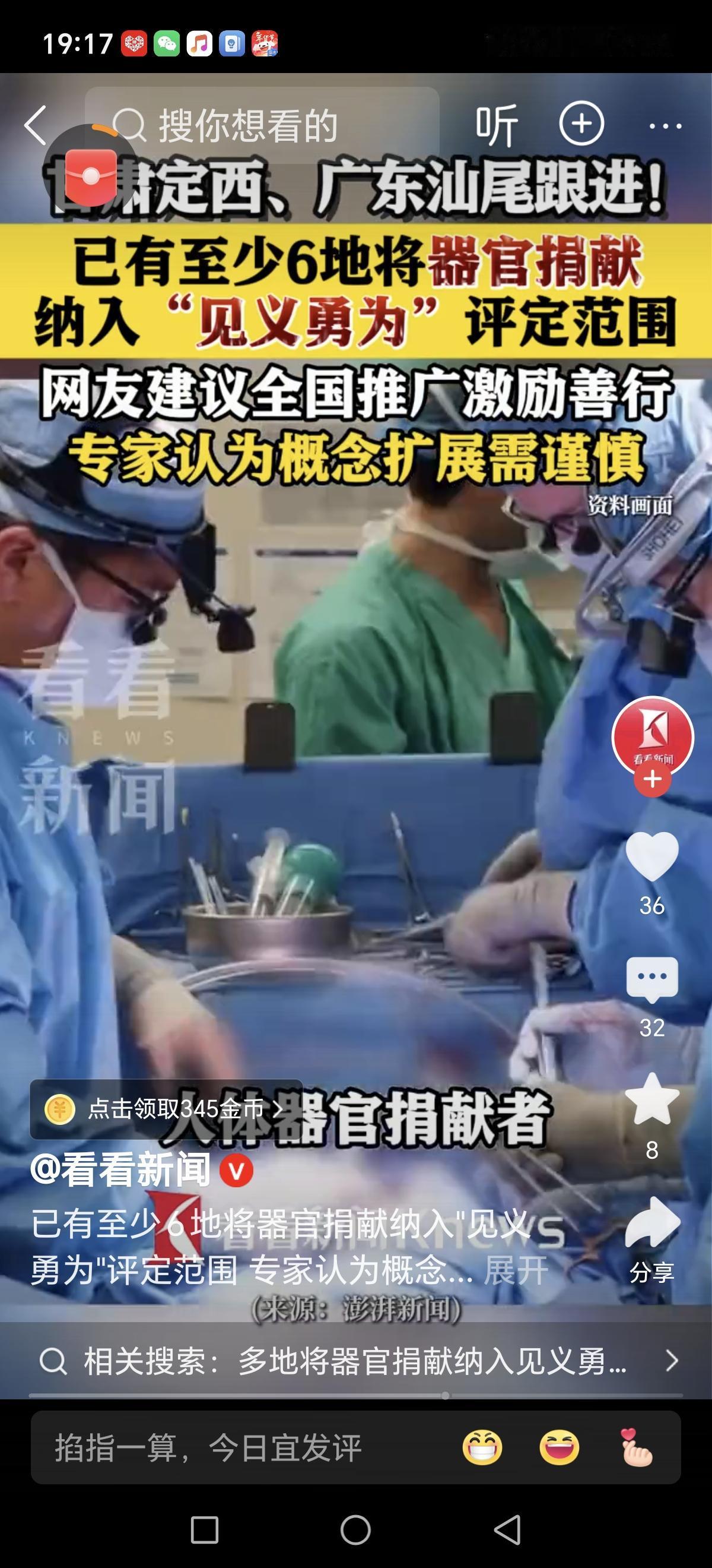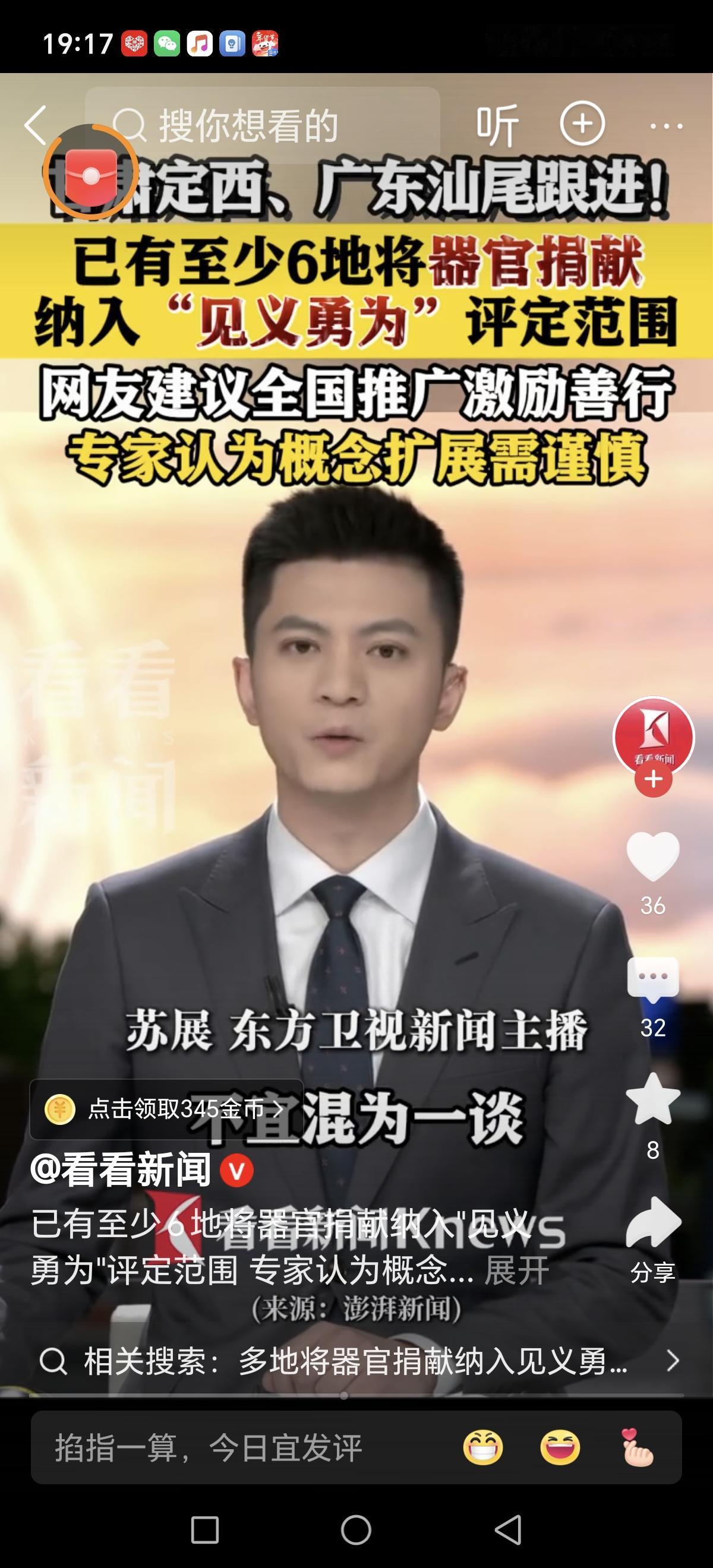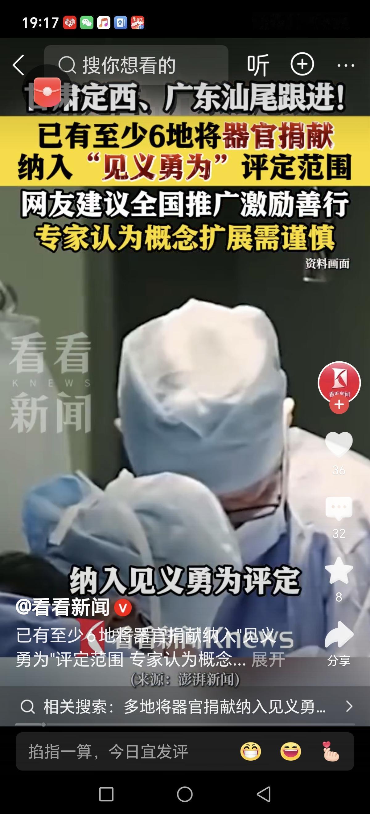 多地将器官捐献纳入见义勇为评定,掀起了一场关于“勇气”与“善行”的激烈讨论。这个举措,表面上看是对“善意”的认可,是社会文明的一大步,但细细品味,却也引发了不少人心中的疑问和争议。 有人会说,器官捐献是“无声的英雄”,是在生死边缘选择善良,彰显人性光辉。这种“勇气”或许没有刀光剑影的惊险,但却是一种更深层次的勇敢——在生命的最后一刻,为他人点亮希望的火种。这无疑值得尊敬和推崇,是新时代社会文明的典范。 然而,也有人担心,这样的“勇敢”是否可以与传统意义上的“见义勇为”划等号?我们习惯了在危难时刻,挺身而出救人、对抗犯罪,用行动证明“勇敢”。而器官捐献,虽然充满爱心,却没有那么“激烈”,更像是一种“内心的勇气”。这会不会模糊了“见义勇为”的本义,让人们产生“勇气的标准”变得模糊的担忧? 更深层次的问题在于,社会价值观的引导。把器官捐献纳入“见义勇为”范畴,是否会让更多人意识到:勇气不仅仅是冲锋陷阵,更是一种无私奉献的精神?这或许是一场价值观的升级,让善行不再局限于“对抗”,而是融入日常、融入生命的点滴。 但我们也要理性思考——社会需要多元的“勇气”表达,但也不能让“勇气”的定义变得模糊不清。毕竟,见义勇为本身是一种行动,是在危难瞬间的果断;而器官捐献,则是一种平凡的善良选择。两者都值得尊重,但在评定体系中是否应有不同的标准?这不仅关乎政策的科学性,更关系到价值观的导向。 这项政策的背后,是社会对“勇气”更宽泛、更包容的理解。它呼唤我们,不仅在风雨中挺身而出,也在平凡中坚守善良。或许,这正是我们这个时代最需要的“勇气”——敢于善良,敢于奉献,用温暖点亮这个世界。捐赠器官 器官志愿捐赠