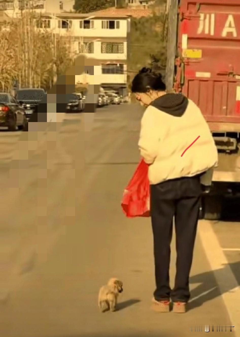 真的越想越解释不清!小姐姐买完东西往家走,身后竟突然冒出来一只小奶狗,一路悄悄跟