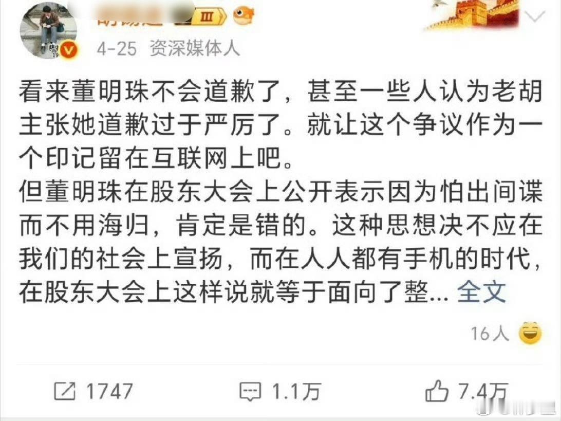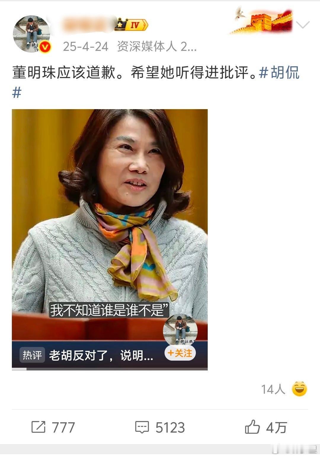 胡锡进老胡现在知道人应该有沉默权了,当时是怎么追着董明珠要求道歉的?你胡有沉默权,董明珠就没有沉默权了? 胡锡进就牢a斩杀线发评论