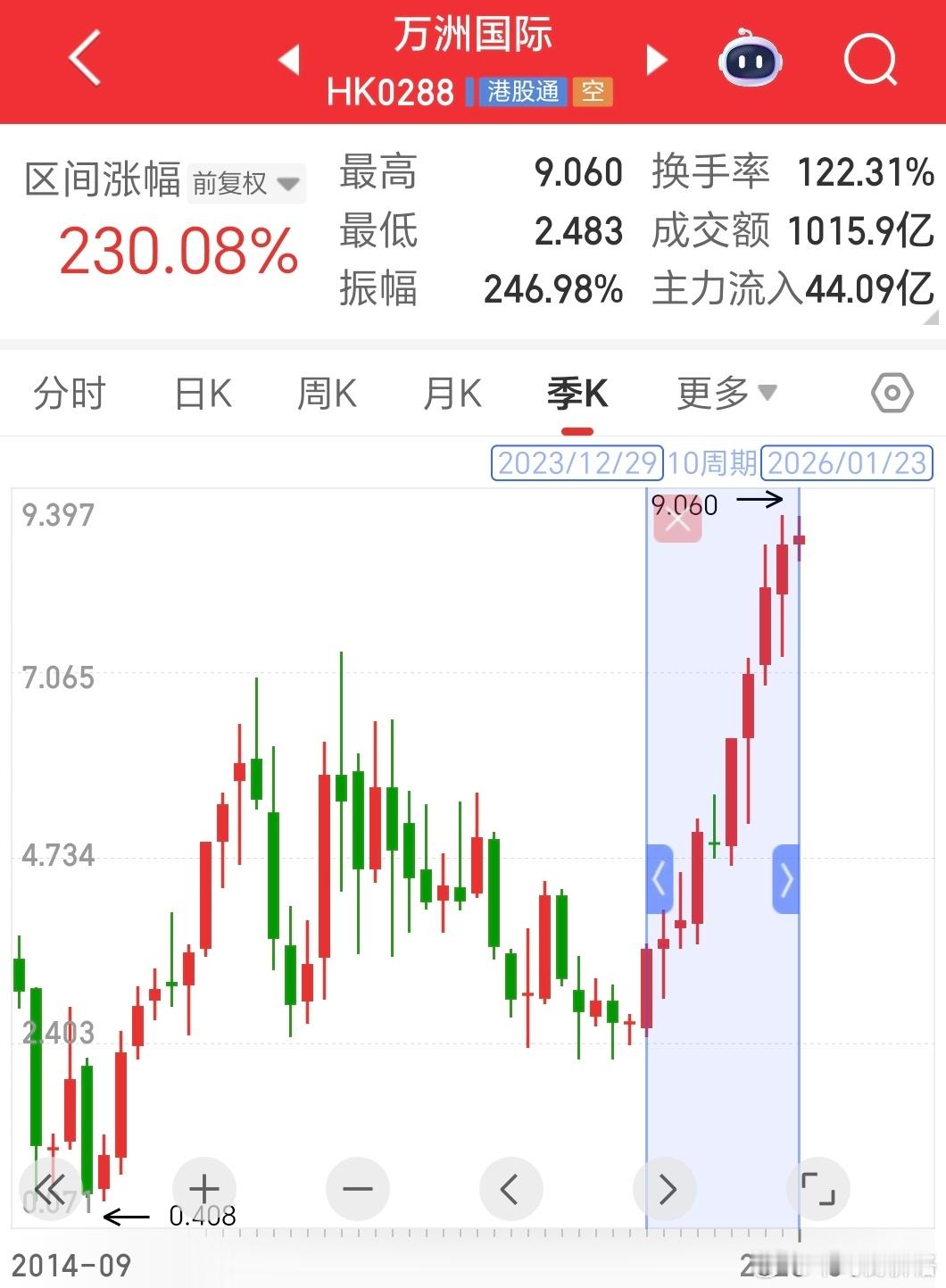 在翻牧原中报,看着看着发现有必要去看看双汇火腿肠。一看又吓一跳,同样是老登,万洲国际股价从底部算起两年涨了3倍多,历史新高了。