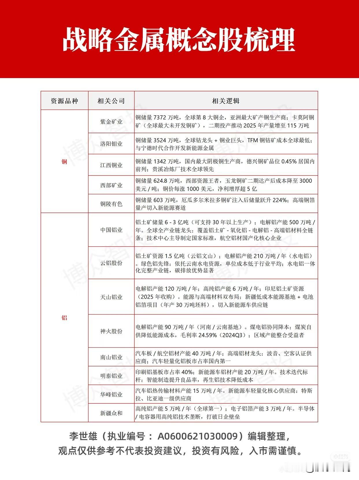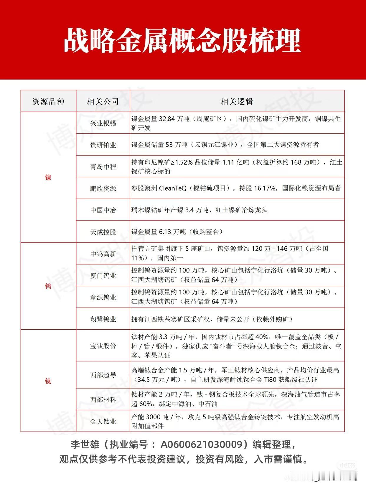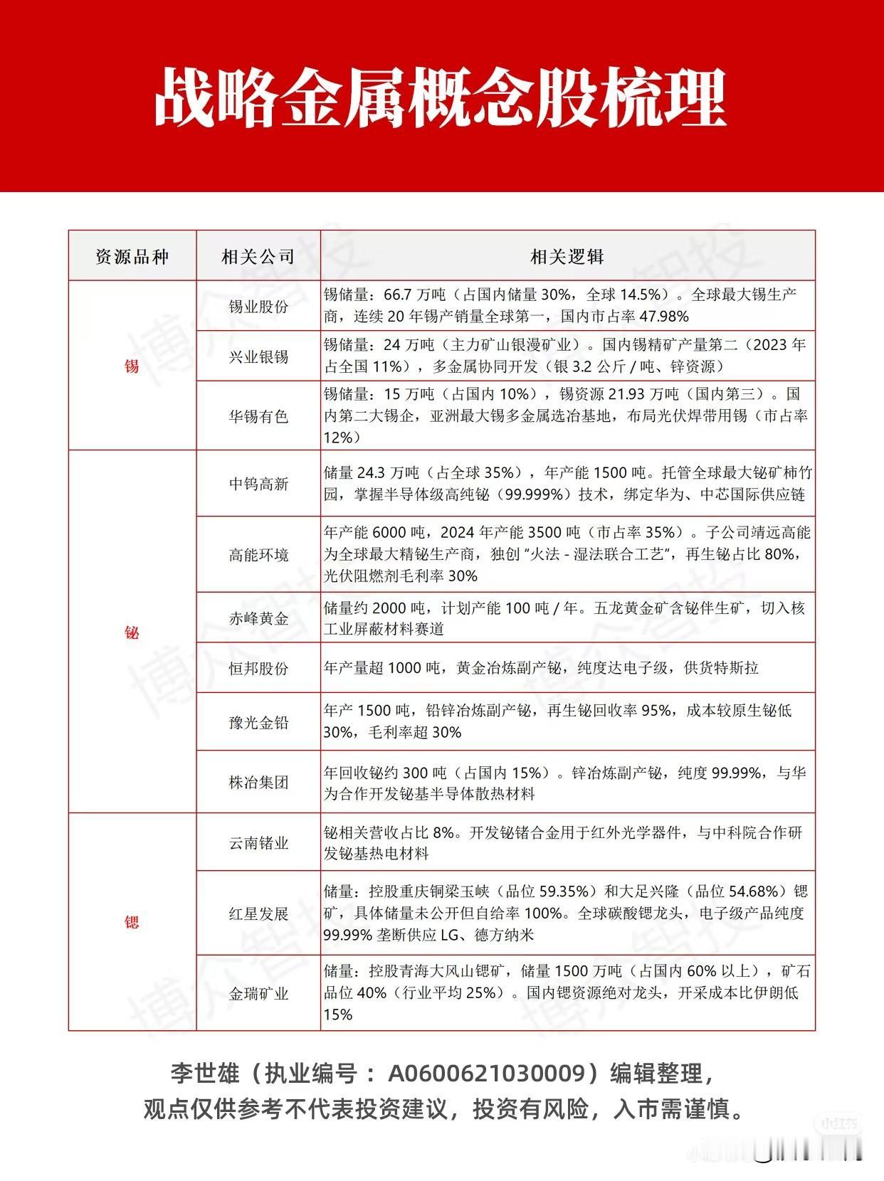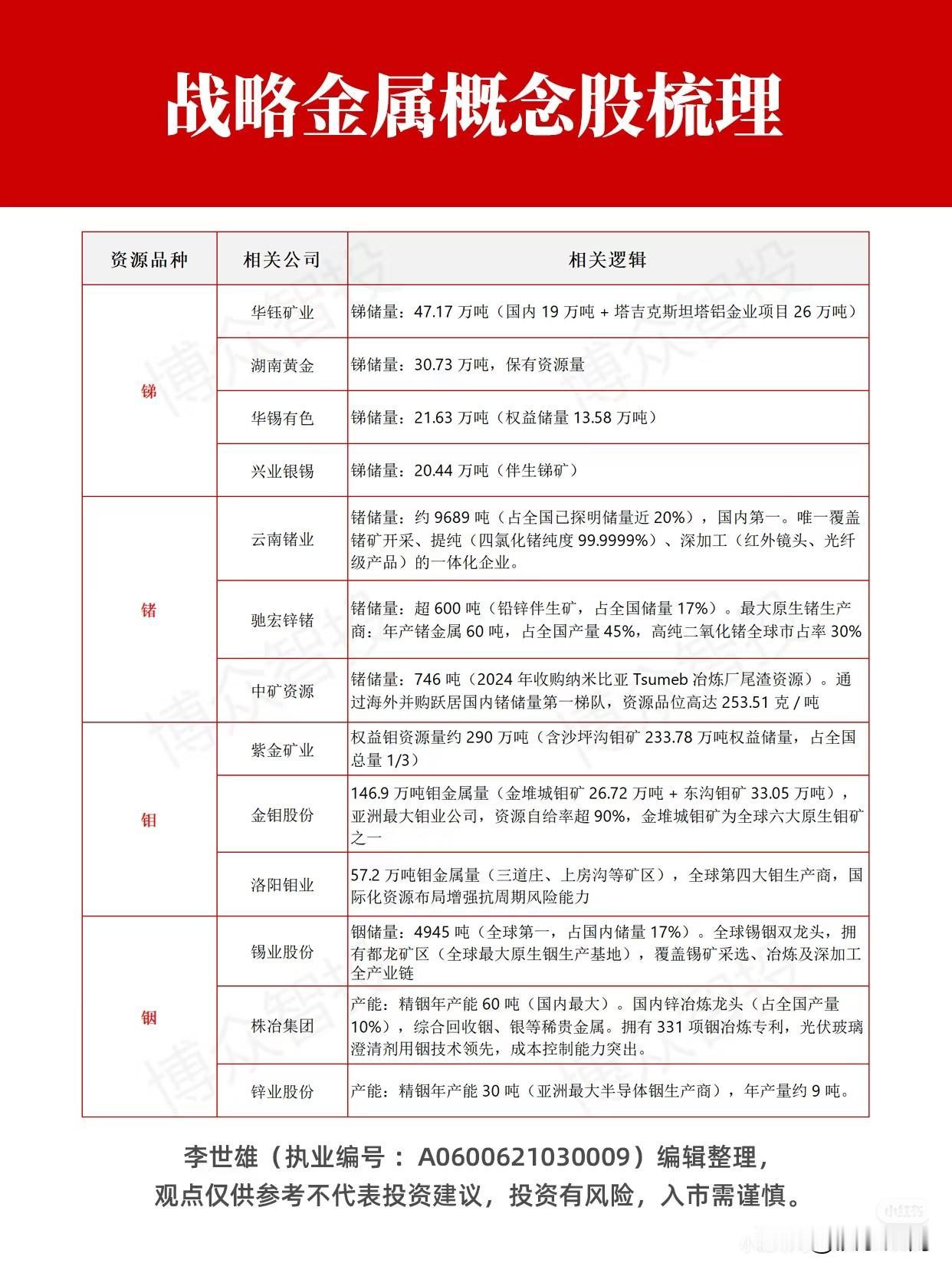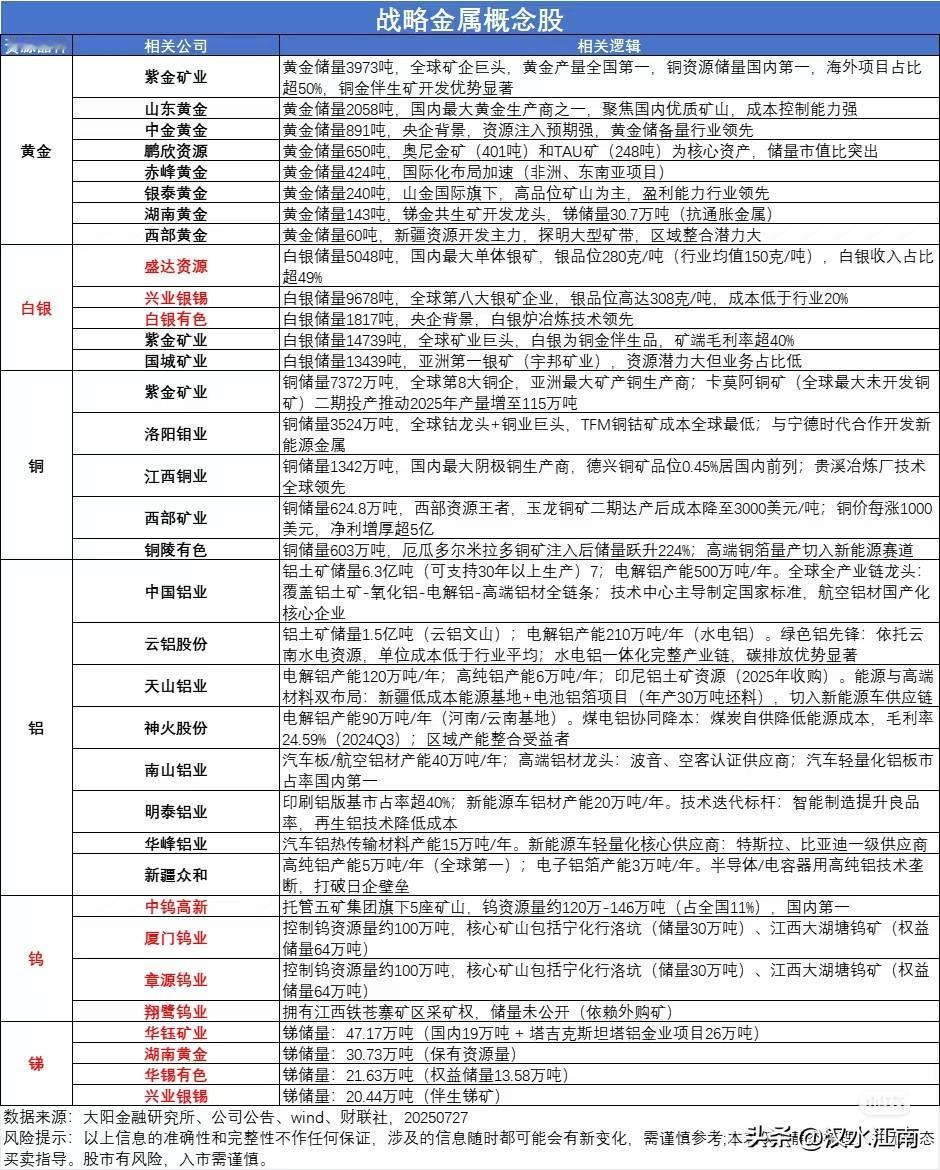 战略金属概念股梳理