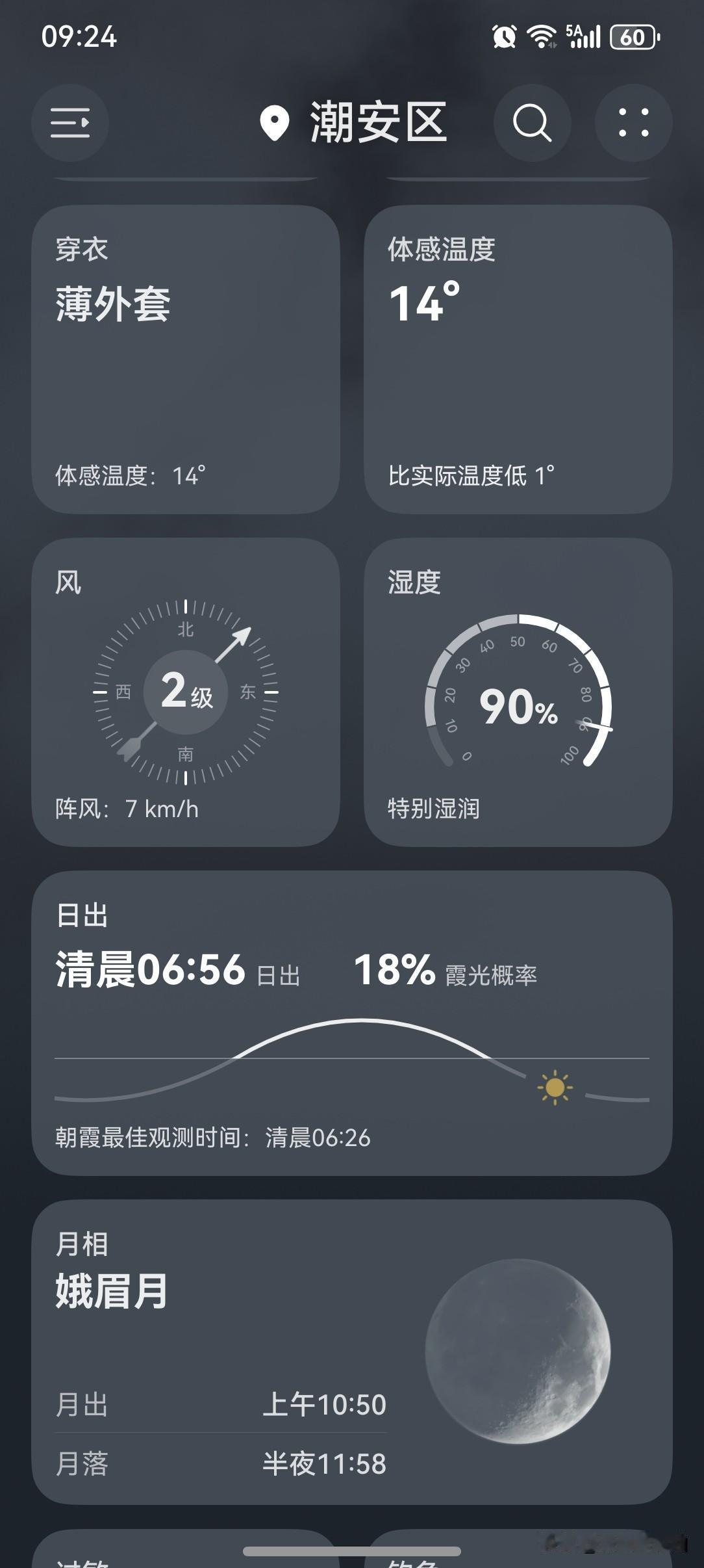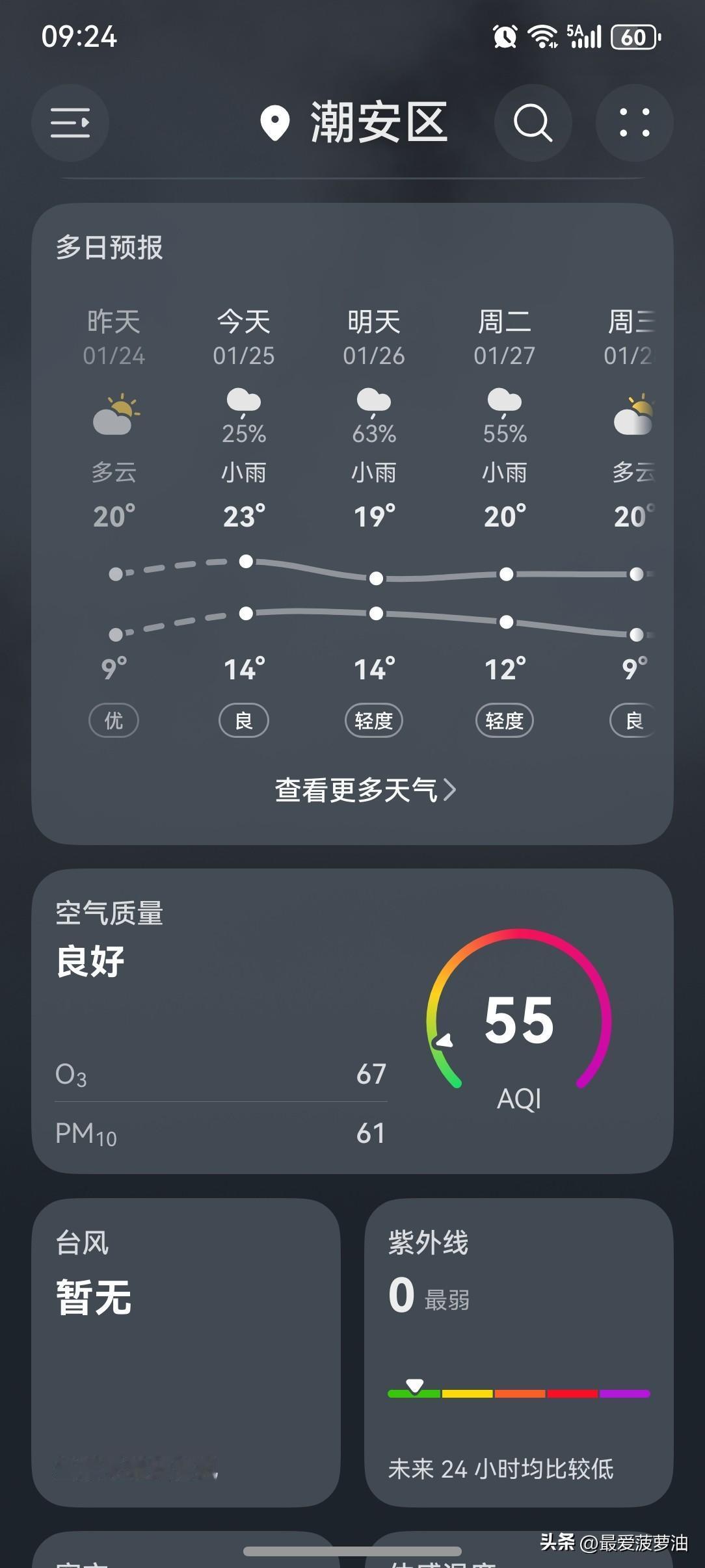 广东将迎雨雾天气湿度增大! 晴天“余额”告急,广东将迎阿雨和阿冷,开启雨水模式!新一轮冷空气已取号,正在派送中…… 今明两天(25~26日),广东大部市县气温继续回升;26日夜间~28日有新的一股弱冷空气影响,我省大部市县有2~5℃的过程累积降温。未来几天广东气温变化节奏快,小伙伴们需要注意适时添减衣物,别让感冒病毒有机可乘。 今天(25日),潮州阴天有小雨,气温14~23℃,此刻气温15℃,体感温度14℃。 早上还只多云天气,不是很阴沉。谁知到了中午云量依然有点多,下午云量更多。除此以外,风力也加大,天气越来越阴沉,然后毫无征兆地下起了雨!幸好雨量不大,小雨而已,瞬间感觉空气都潮湿了! 雨雾天气已经开启啦!空气湿度也增大!此刻外面居然还有雾,回南天这是要上线了吗? 温馨提醒:小伙伴们!睡前记得把家里的门窗都关紧了!我关干为敬了! 图四是早上的天色 图五是中午的天色 图六是下午的天色