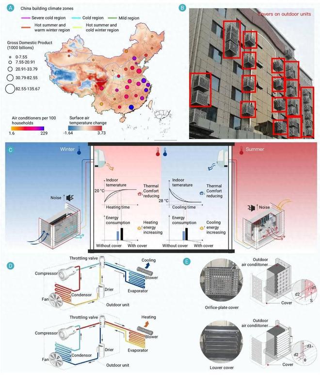 1月25日,记者从东南大学获悉,该校建筑学院王伟副研究员联合东南大学电气学院、美国劳伦斯伯克利国家实验室等多所研究机构,在《细胞》(Cell)旗下的国际著名期刊《创新·能源》(TheInnovationEnergy)上发表了题为“空调外机罩优化设计:一种缓解亚洲大城市隐藏的能源负担的路径”的论文,系统揭示了空调外机遮挡物对建筑能耗与运行性能的负面影响,并提出可通过优化结构设计实现美观与能效的平衡,为城市建筑外立面设计与节能政策制定提供了重要科学依据。