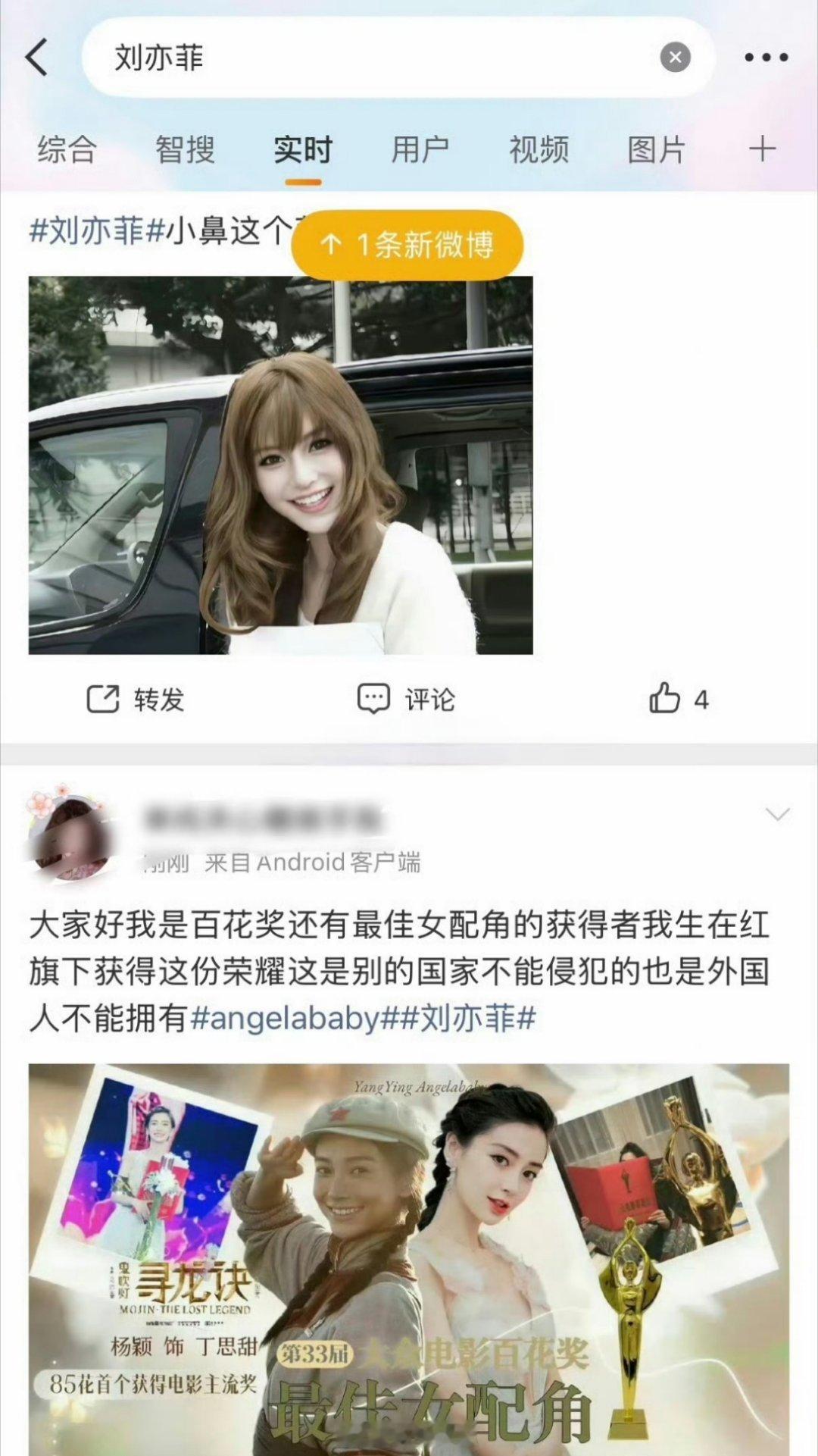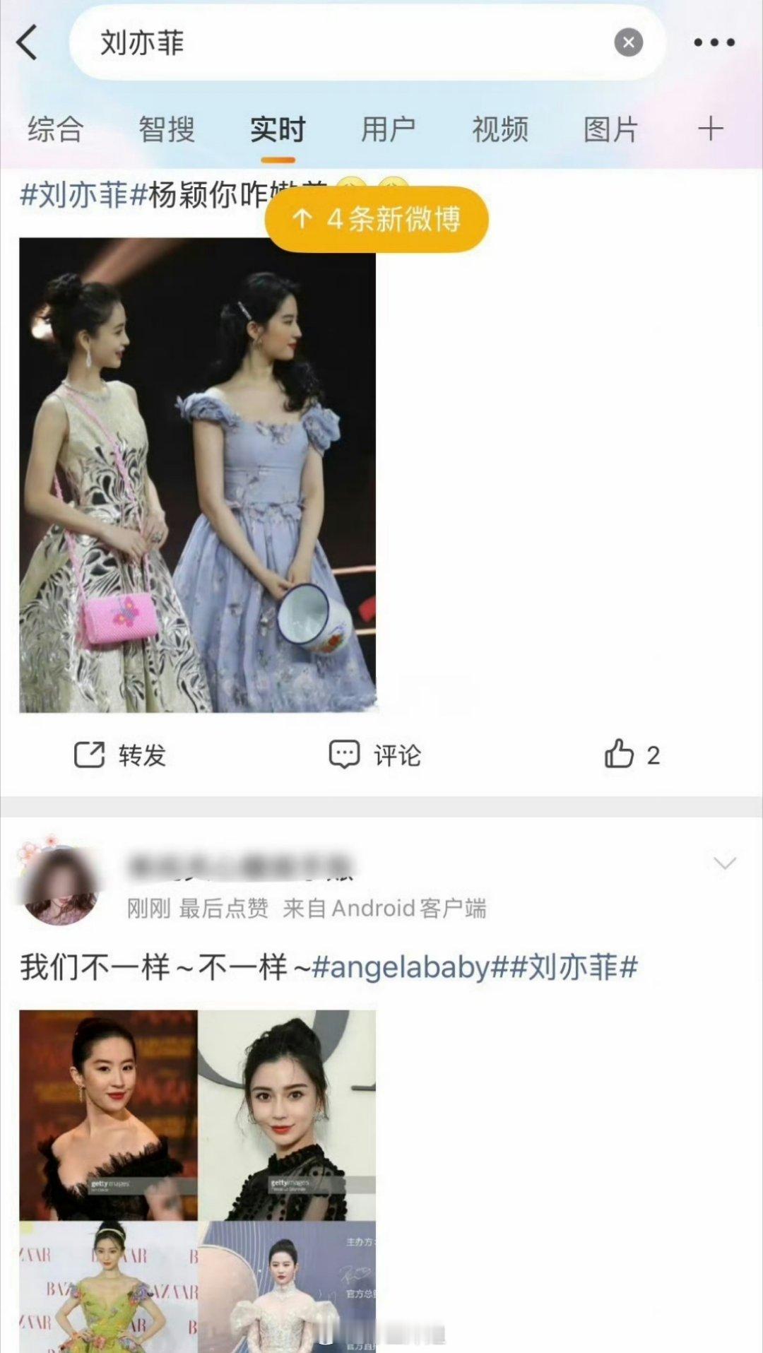 刘亦菲的实时广场 ,突然出现了一堆关于Angelababy的图片和文字,这是咋回事?把别人广场给冲了?