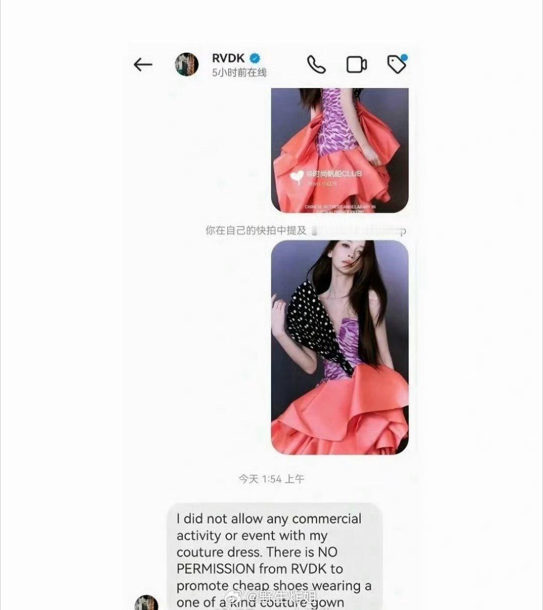 昨天Angelababy去参加一个鞋子品牌的直播间的时候穿着高定礼服,结果这个品牌设计师直接说“从未授权任何人穿着这件独一无二的高定礼服 去推广廉价鞋子”