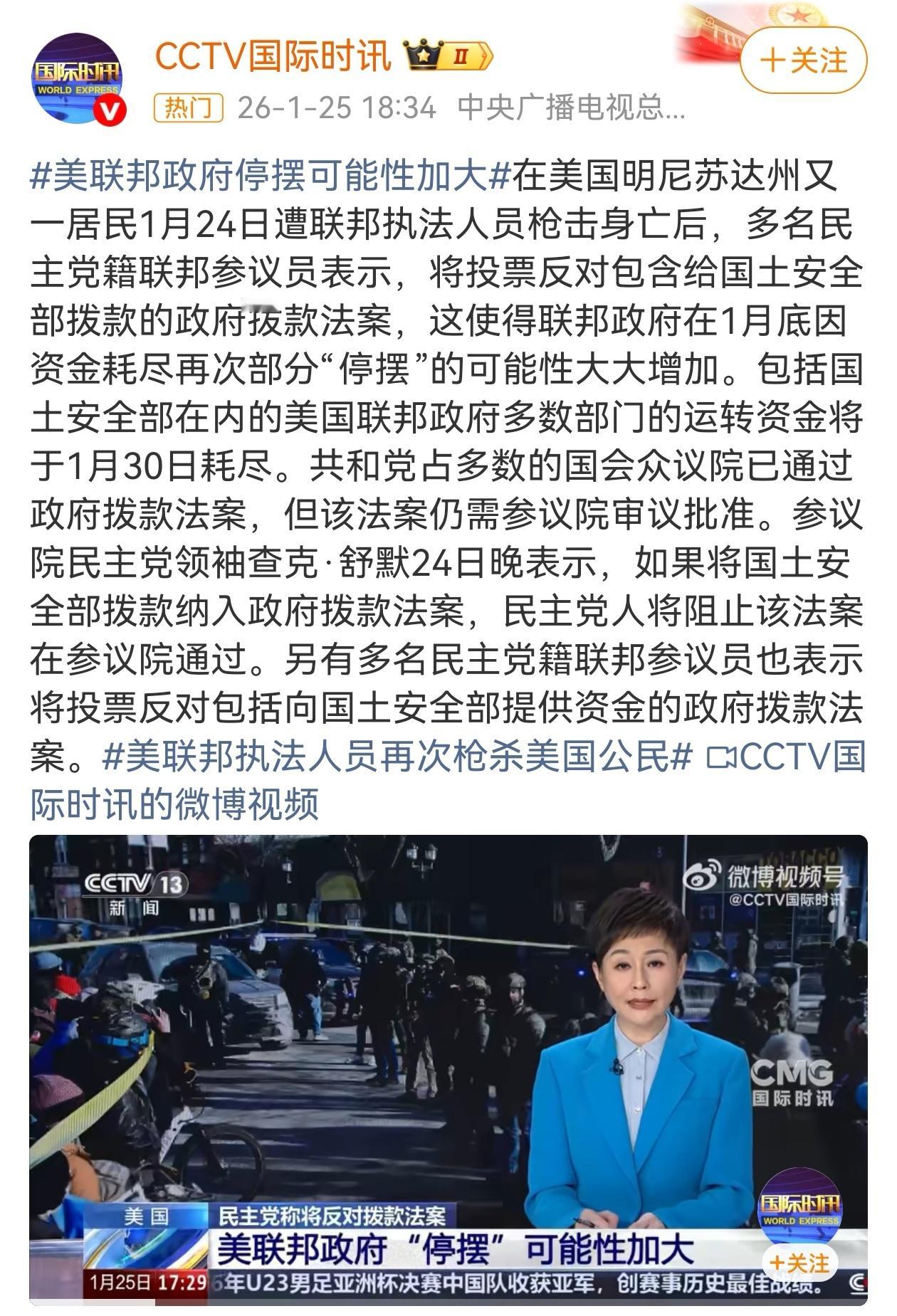 美国是一个伪装成国家的公司,把各种“日常管理”交给地方,甚至都没法做到全国身份证统一,类似于身份证的是“驾驶证”,但这个证不是国家发的,而是各州发的。每个州都有自己的格式、自己的系统、自己的管理方式,每搬到另一个州,就要重新办一次。美政府或将再次停摆时事满谈去年11月12日,美国史上最长联邦政府“停摆”结束,持续43天停摆也是美国特色,如今或将继续停摆。美国不仅有党派之争,州与州之间也在较劲,身份证件不统一,更增加跨区抓捕的难度,各州管好各自的事,只有涉及重大案件,联邦层面才会协调。事实上,除了被斩杀的美国人民,哪怕是特朗普,都担心家族后代有可能被斩杀,个人疯狂敛财其实是“饮鸩止渴”,国家体制决定了,被排队“斩杀”的美国人很难反抗,原来他才是牢A,这个世界从不缺敲钟人,很多美国人哪怕知道“斩杀线”,也只能默默承受美国体制的悲剧。美政府或将再次停摆