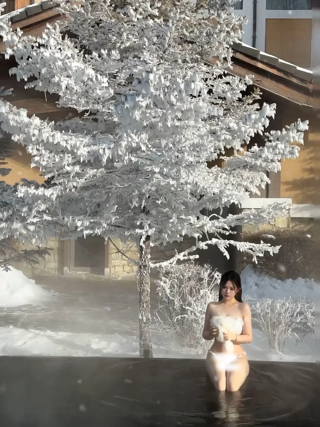 被雪包围的雾凇温泉❄️